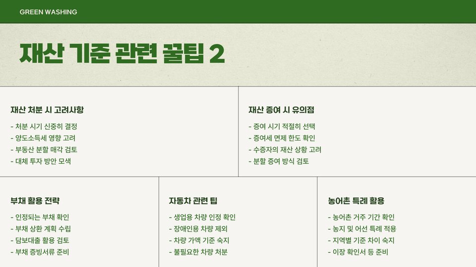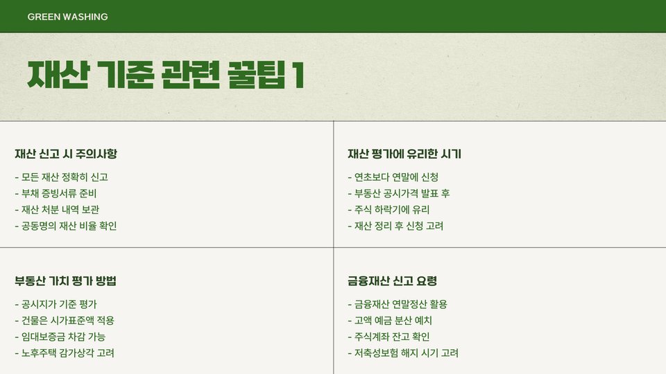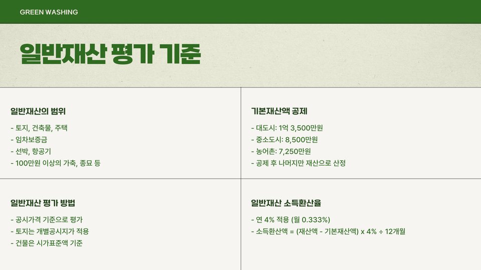 - 재산 기준 금액은 매년 변동되므로 주의 필요.