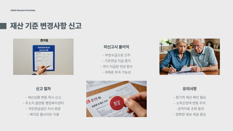 또한, 상대적인 재산 기준도 있습니다. 예를 들어, 가구 소득이나 가족 구성원 수에 따라서도 차별화된 접근이 필요하죠. 이 기준에 대해 정확한 평가를 받아야 최종적으로 기초연금을 신청할 수 있으므로 주의 깊게 확인해야 합니다.