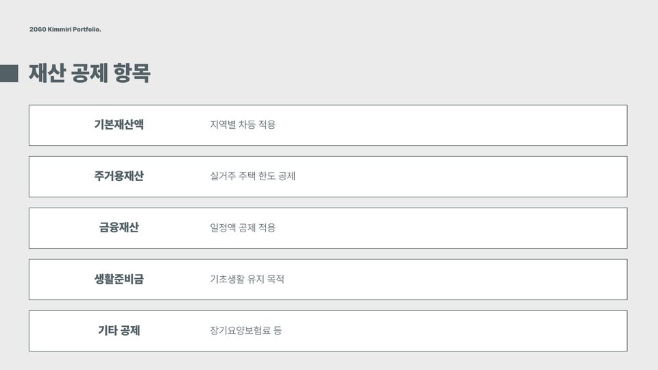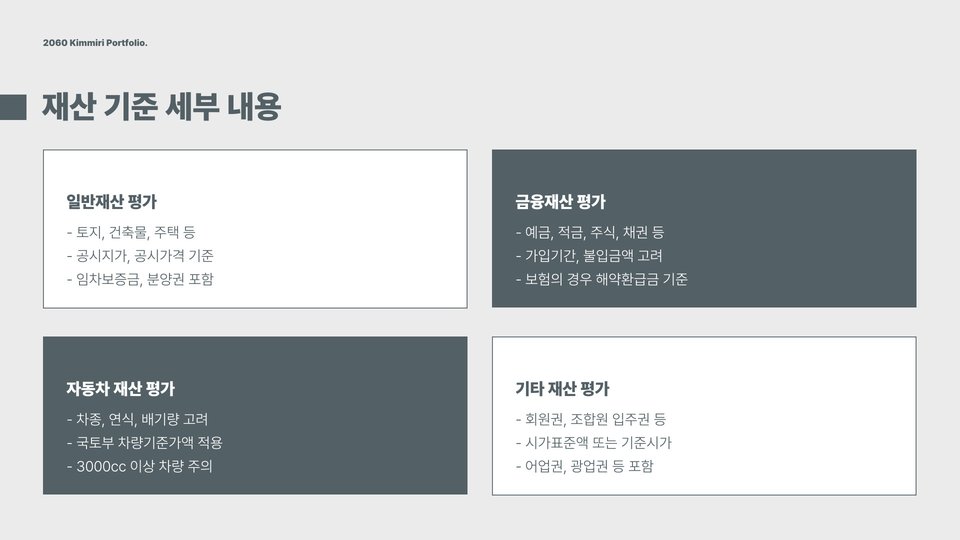 - 재산 기준은 정기적으로 검토 및 변경 가능성이 있으며, 최신 정보를 체크해야 합니다.
