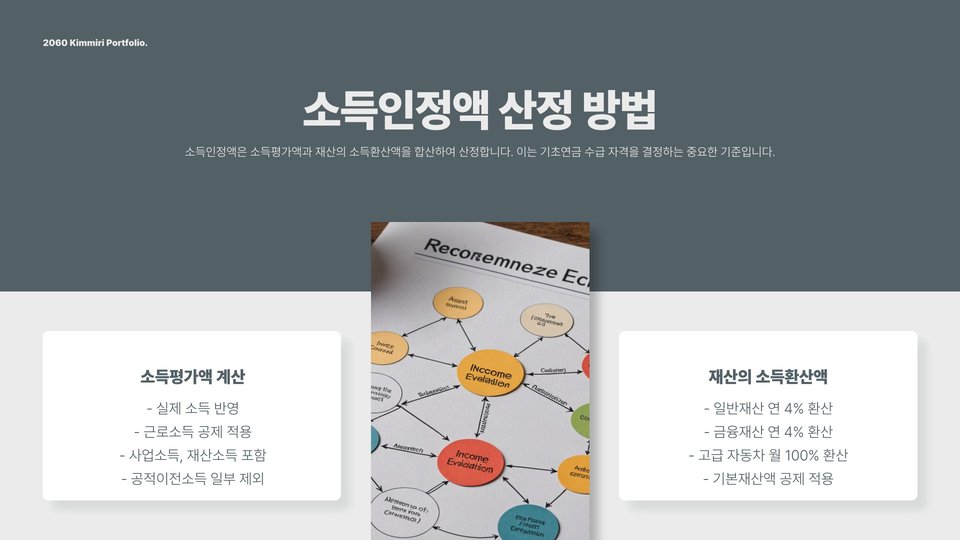 기초연금의 재산 기준은 여러 요소로 구성됩니다. 주택은 소유하고 있는 경우 평가 대상이 되며, 공시지가를 기준으로 산정됩니다. 자동차는 연식과 모델에 따라 평가되며, 금융자산은 은행 잔고, 투자 자산 등을 포함합니다. 이 외에도 부채가 있는 경우, 부채를 공제한 후 재산을 계산하게 됩니다.