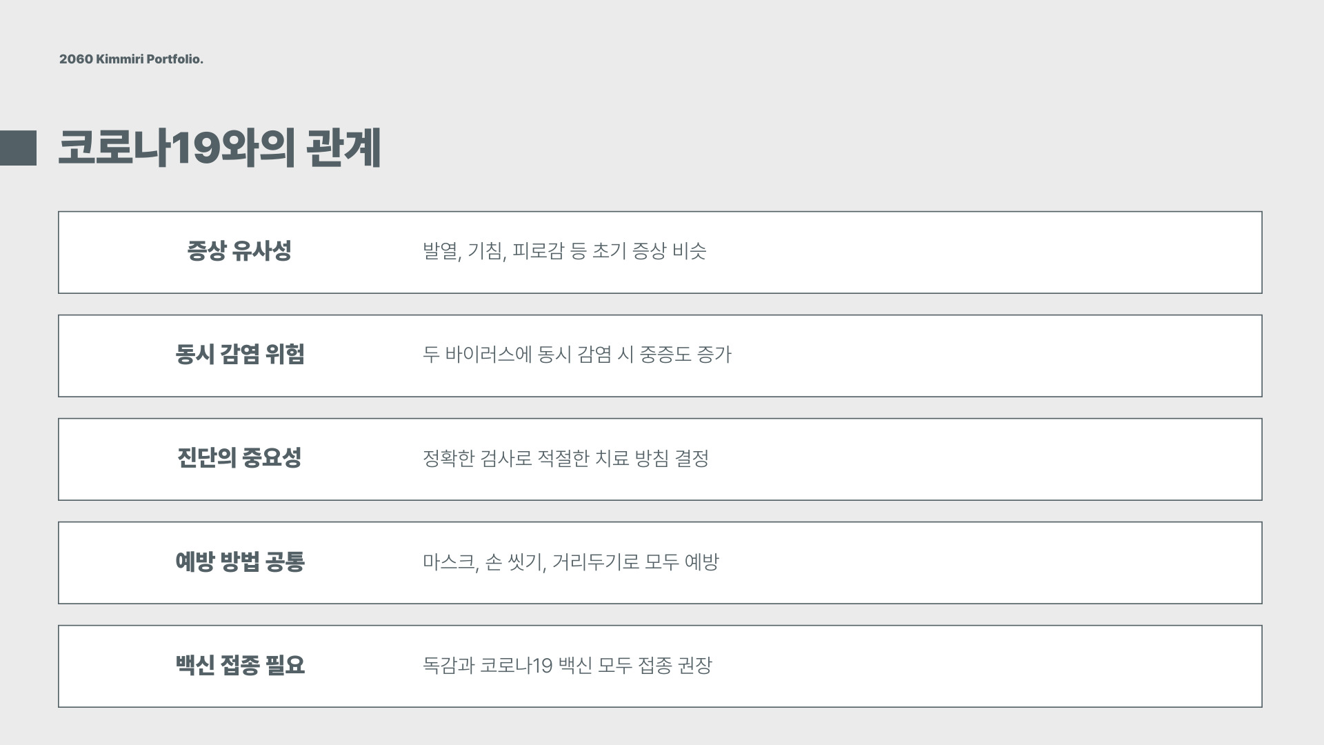 - 독감과 감기는 증상이 유사하나 원인 바이러스가 다르다.