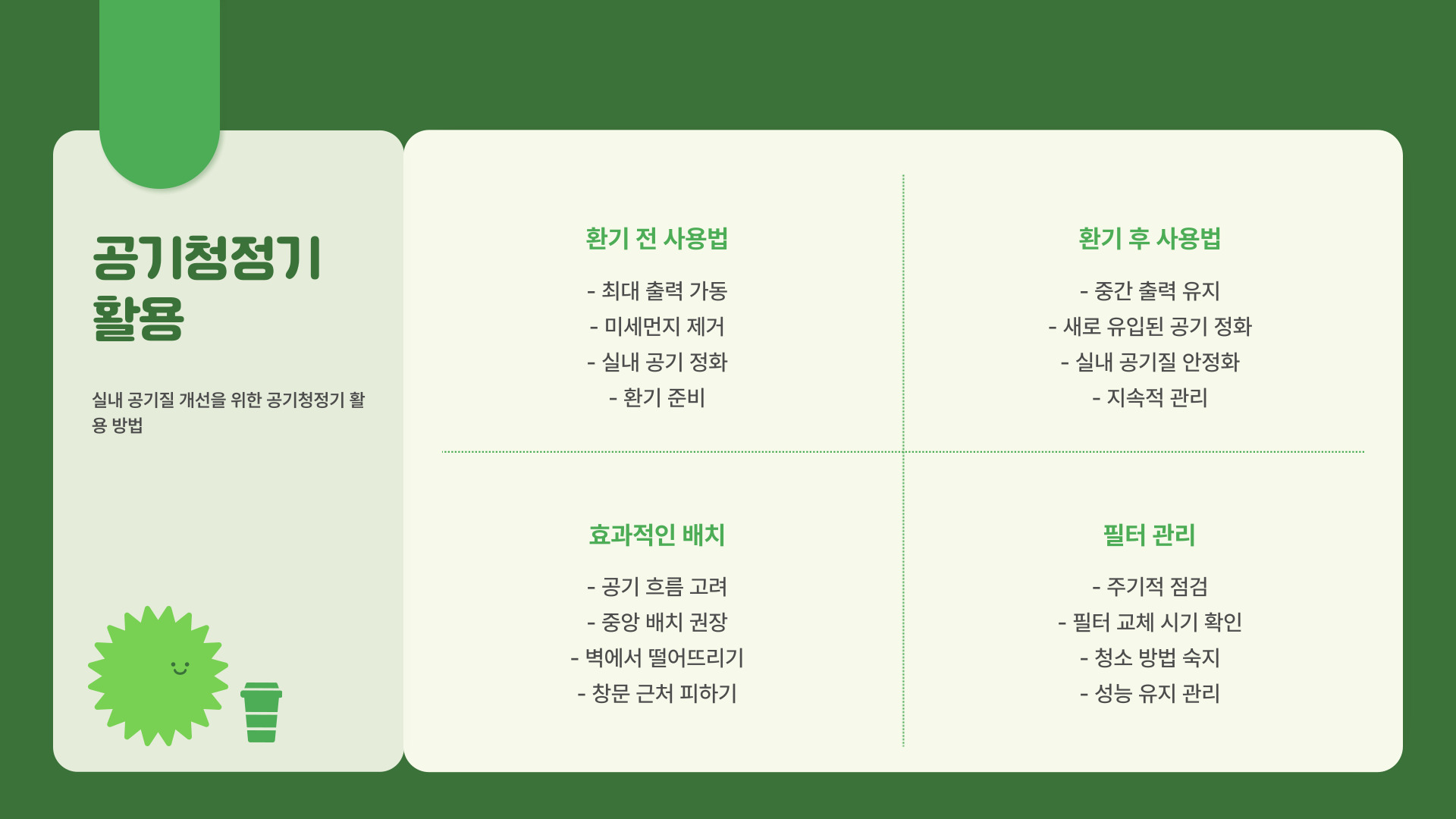 - 자연 환기와 공기청정기를 함께 사용