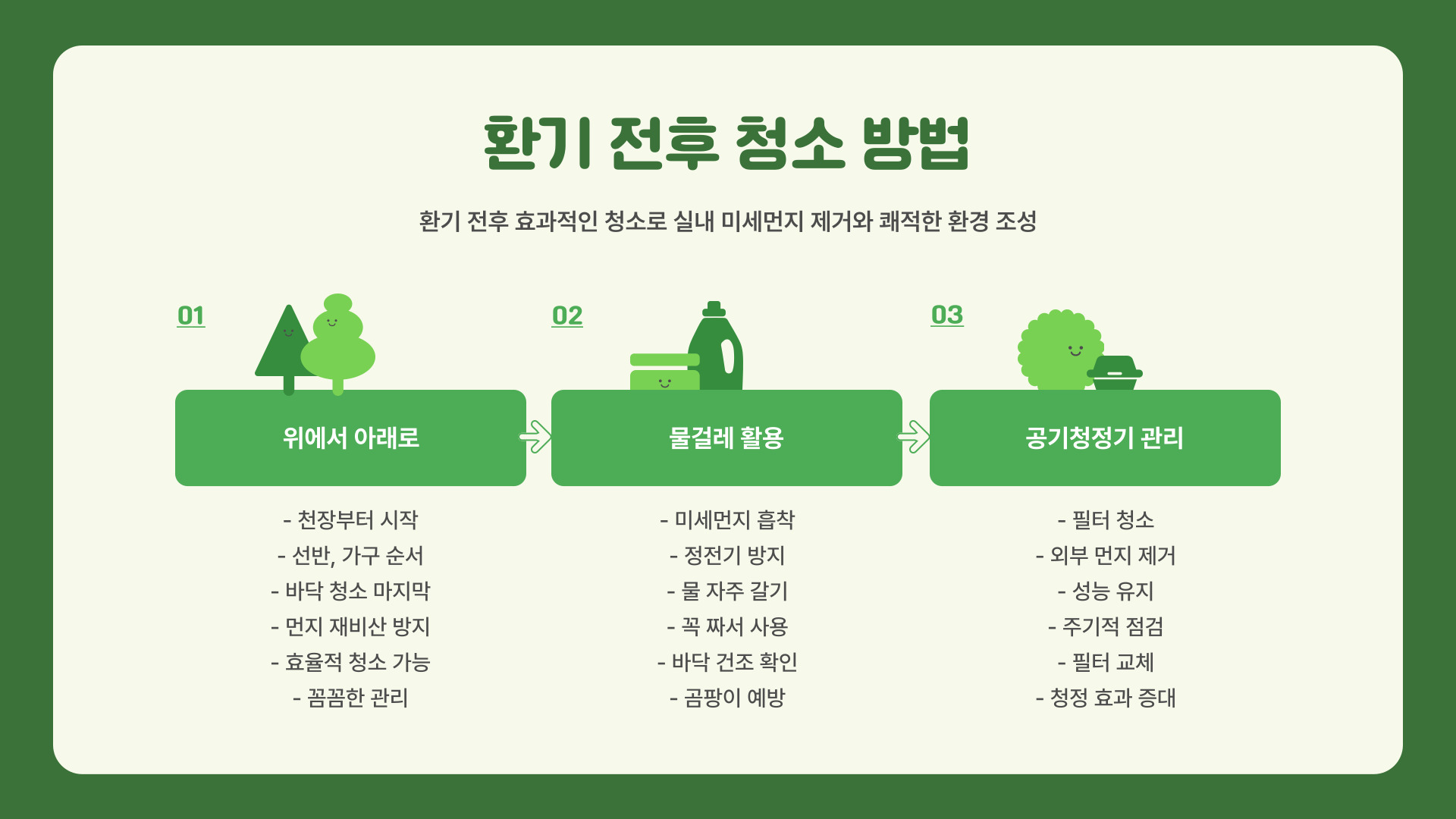 또한, 주변 다른 사람들과 정보를 공유하여 모두가 건강한 실내 환경을 조성할 수 있도록 하십시오.