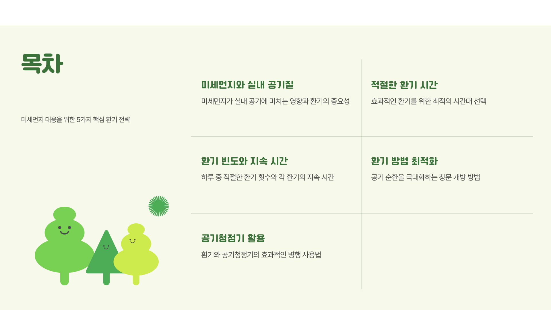 따라서, 단순히 환기라는 개념에서 벗어나 실내 공기의 질을 개선할 수 있는 다양한 방식으로 접근해보세요.