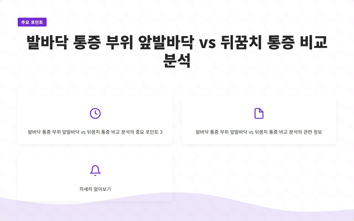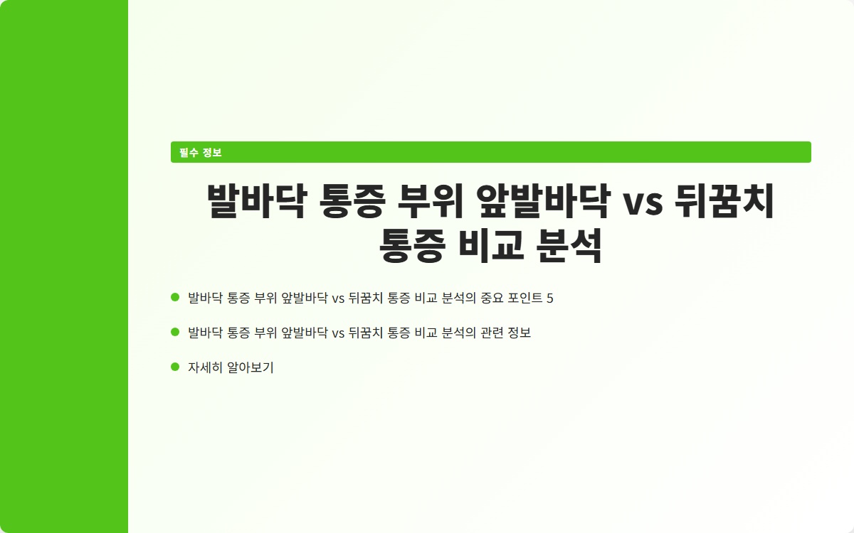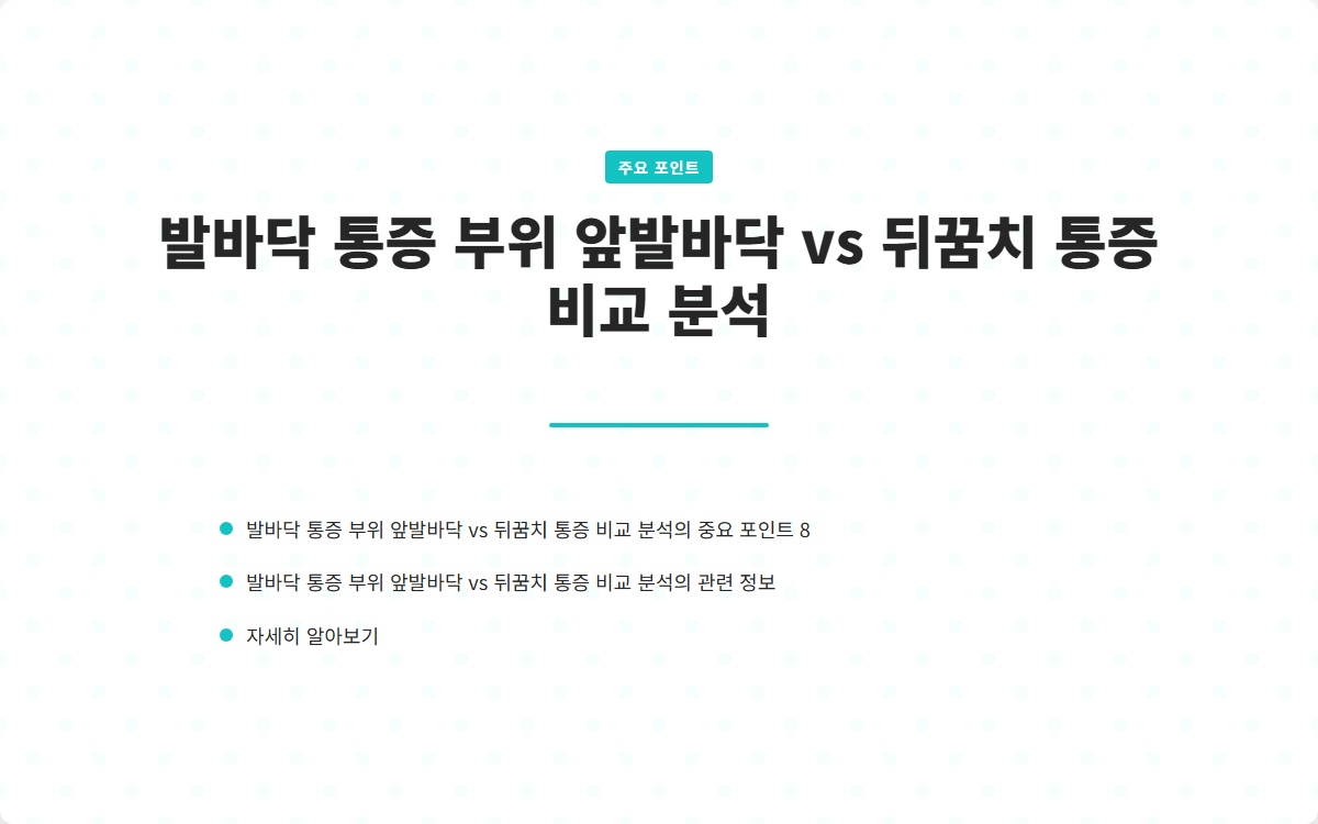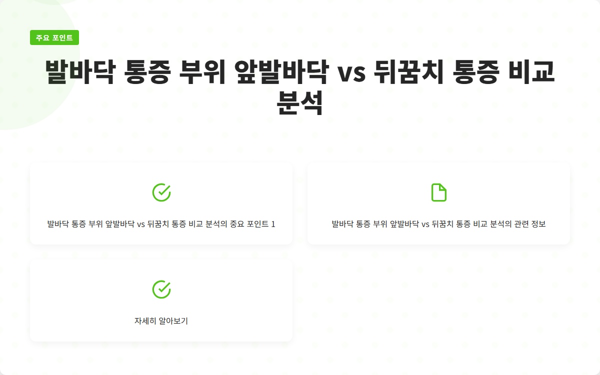 발바닥 통증은 많은 사람들이 겪는 문제입니다. 앞발바닥 통증과 뒤꿈치 통증은 그 원인과 치료 방법이 다릅니다. 이 글을 통해 각 통증 부위의 특성과 관리 방법을 알아보세요! 지금 확인해보세요!