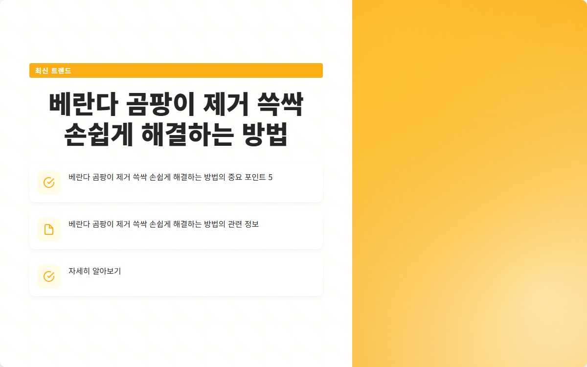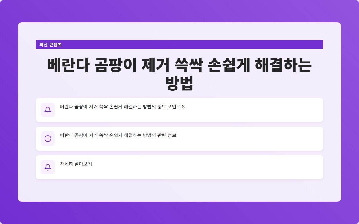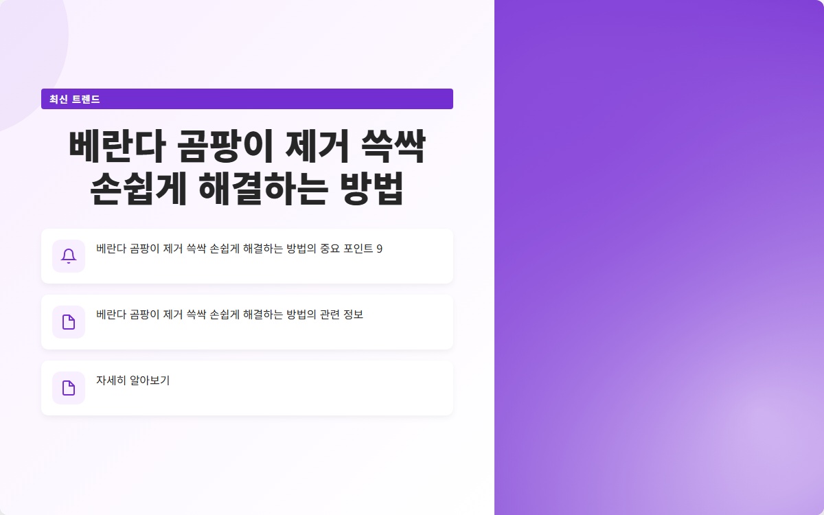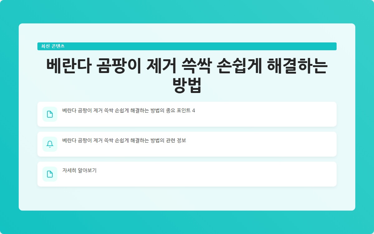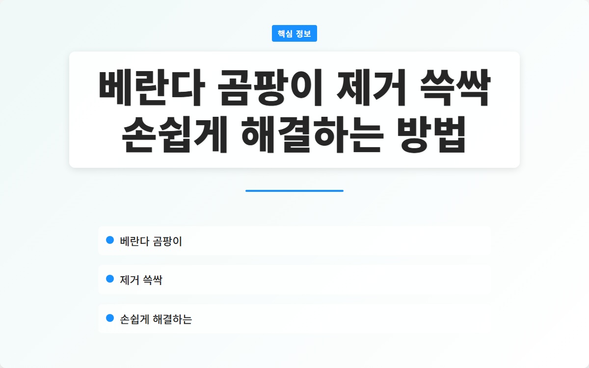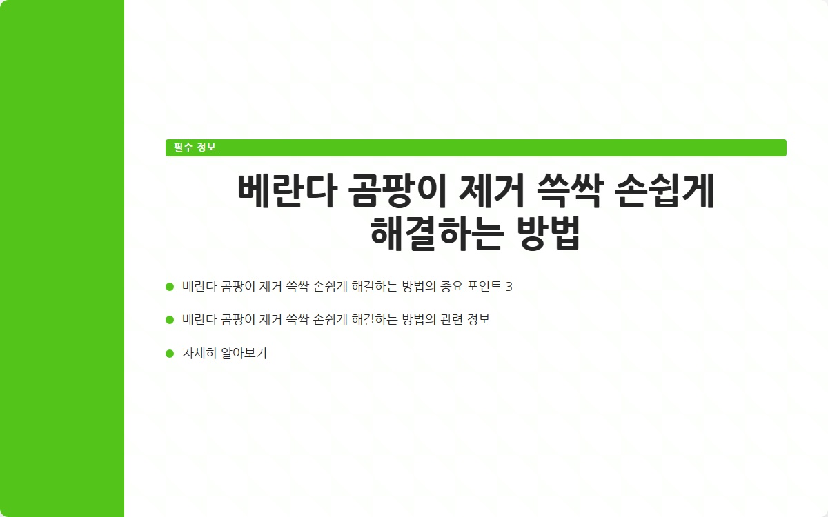 많은 사람들이 베란다에서 곰팡이를 발견하고 당황하는 경우가 많습니다. 특히 습기가 많고 통풍이 잘 되지 않는 공간에서 곰팡이는 쉽게 번식할 수 있습니다. 이 글에서는 베란다 곰팡이 제거 방법에 대해 자세히 알아보고, 효과적인 제거 방법과 예방 팁을 공유하겠습니다.