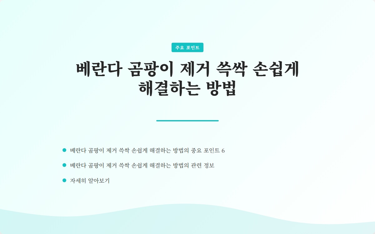 결론적으로, 베란다의 곰팡이 문제는 간단한 방법으로 해결할 수 있습니다. 필요한 준비물을 갖추고, 효과적인 제거 방법을 실행하며, 정기적으로 관리하면 건강하고 쾌적한 베란다를 유지할 수 있습니다. 위의 팁과 방법을 꼭 참고하여, 곰팡이로부터 자유로운 공간을 만들어 보세요.