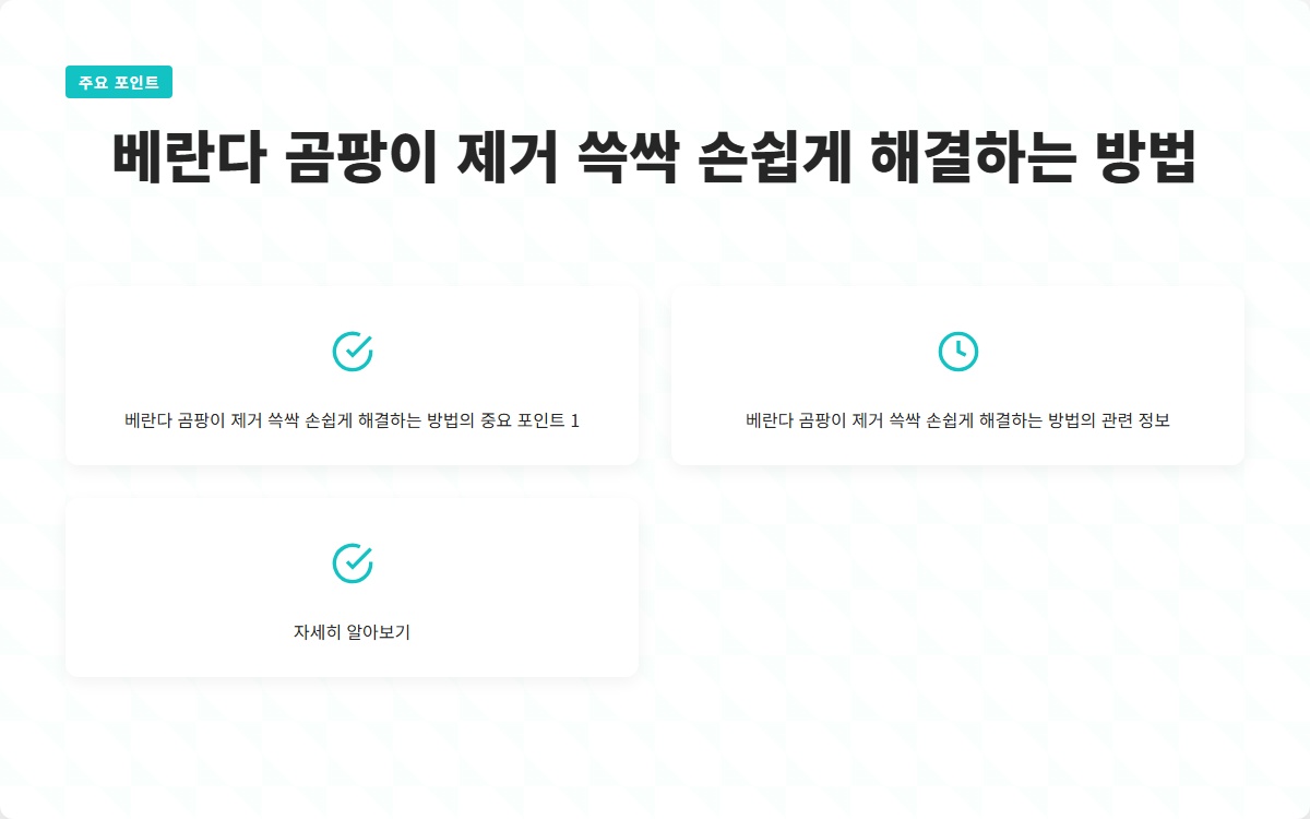 - 정기적인 청소: 베란다를 정기적으로 청소하여 습기와 먼지를 제거합니다.
