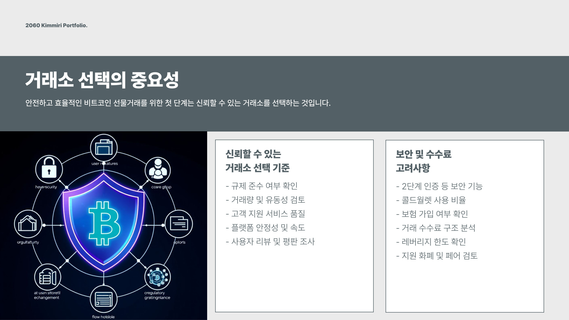신뢰할 수 있는 거래소를 선택하는 것은 비트코인 선물거래에서 가장 중요한 요소 중 하나입니다. 불법적인 거래소를 이용하면 자산을 잃을 위험이 크기 때문에, 평판이 좋은 거래소를 선택해야 합니다. 거래소의 보안 수준, 거래 수수료, 고객 서비스 등을 고려하여 선택하는 것이 좋습니다. 또한, 각 거래소의 레버리지 한도와 거래 가능한 자산 종류도 체크해야 합니다.
