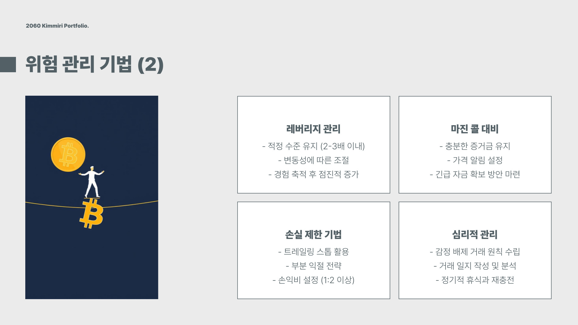 선물거래는 높은 위험을 동반하므로, 효과적인 위험 관리가 필요합니다. 손실을 최소화하기 위해서는 스톱로스 설정이 중요합니다. 또한, 투자 금액을 분산시키고, 한 번의 거래로 모든 자산을 투자하지 않는 것이 좋습니다. 심리적 요인도 거래에 영향을 미치므로, 감정에 휘둘리지 않도록 스스로 통제를 유지해야 합니다. 종합적으로, 신중하게 접근하는 것이 손실을 줄이는 길입니다.