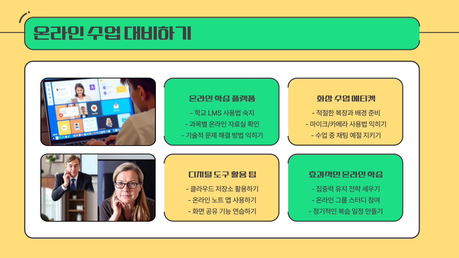 새학기를 준비하는 기본 팁은 다음과 같습니다: