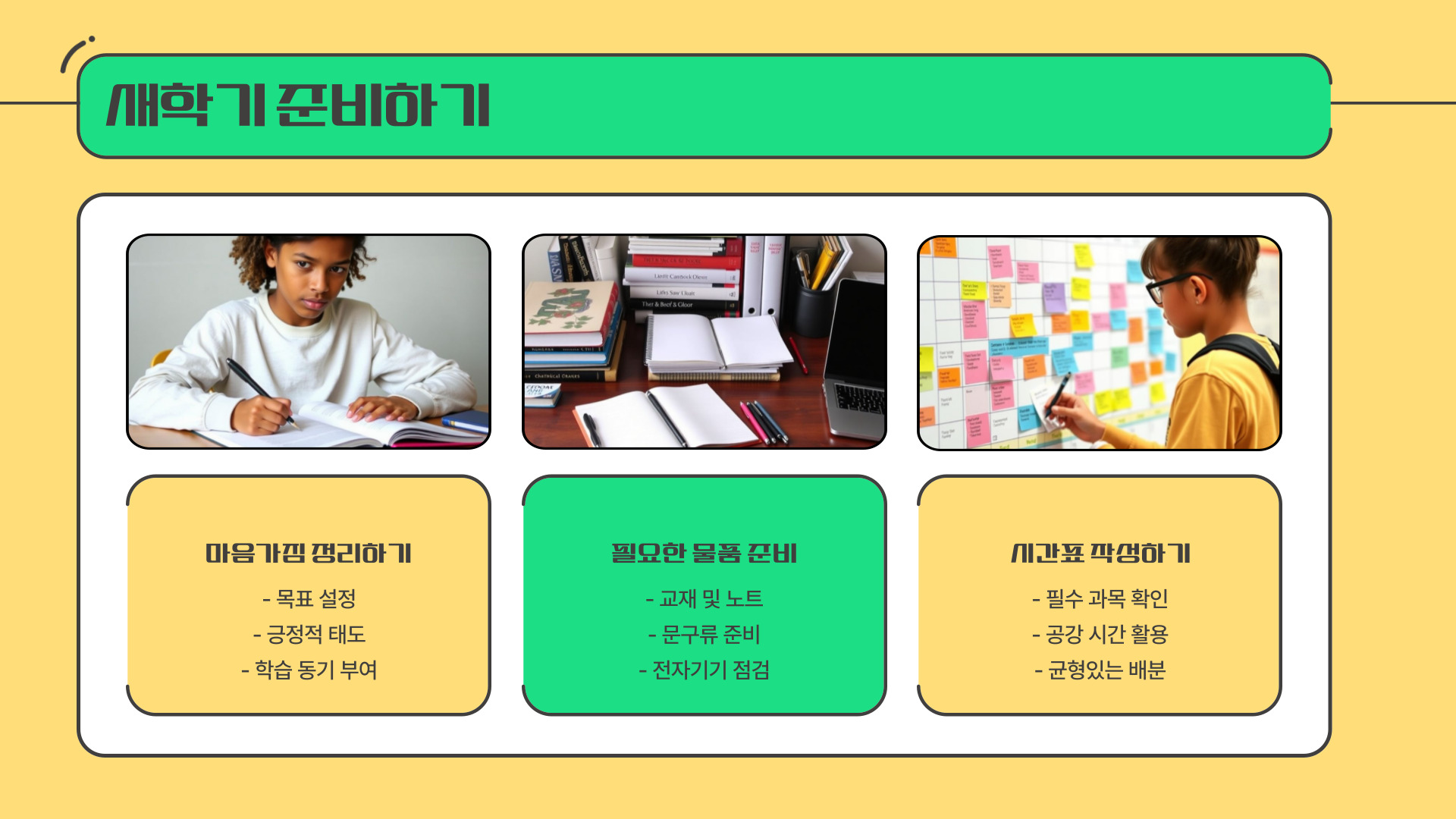 새학기를 준비하는 데 도움이 되는 핵심 포인트는 다음과 같습니다:
