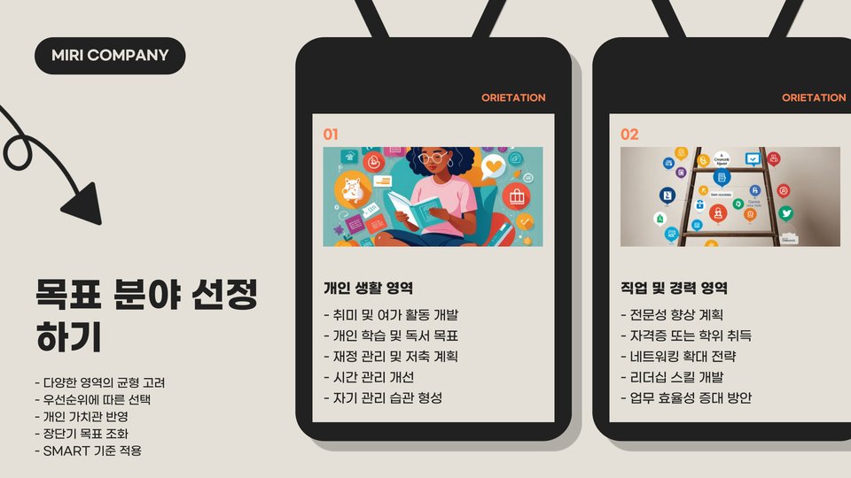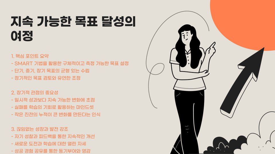 - 목표는 SMART 원칙에 따라 구체적이고 실현 가능해야 합니다.