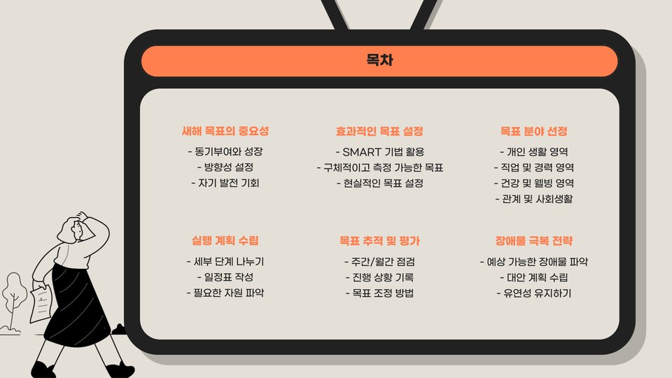 이제 새해, 새 목표를 세우고 실천할 준비가 되셨으리라 생각합니다. 각자의 상황에 맞게 목표를 조정하고, 추진력을 잃지 않도록 다양한 방법을 활용해 보세요. 새해 목표를 이루는 것은 가능하니, 잘 준비하고 성취해 나가길 바랍니다!