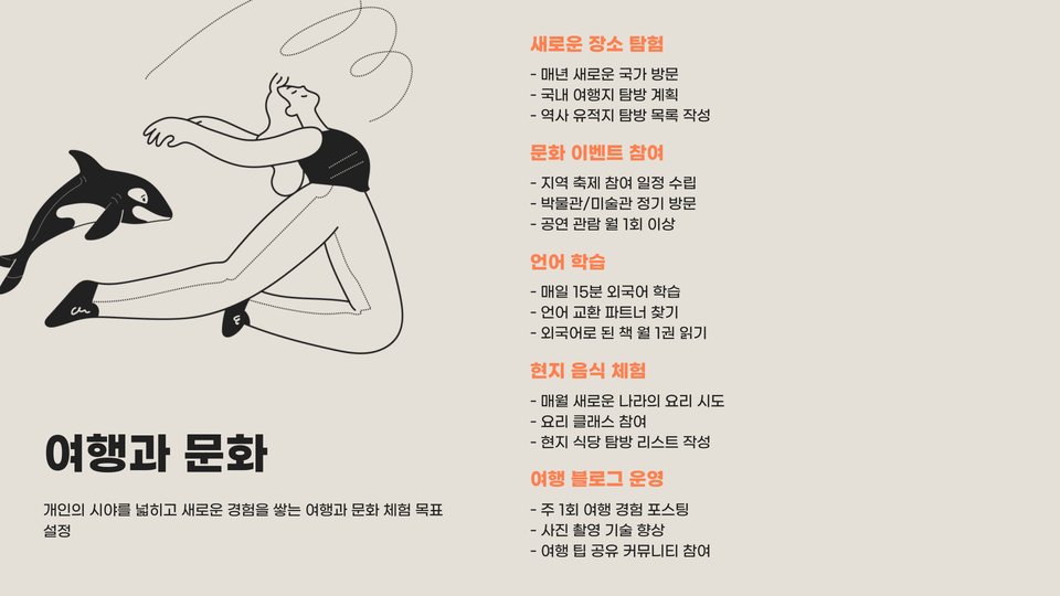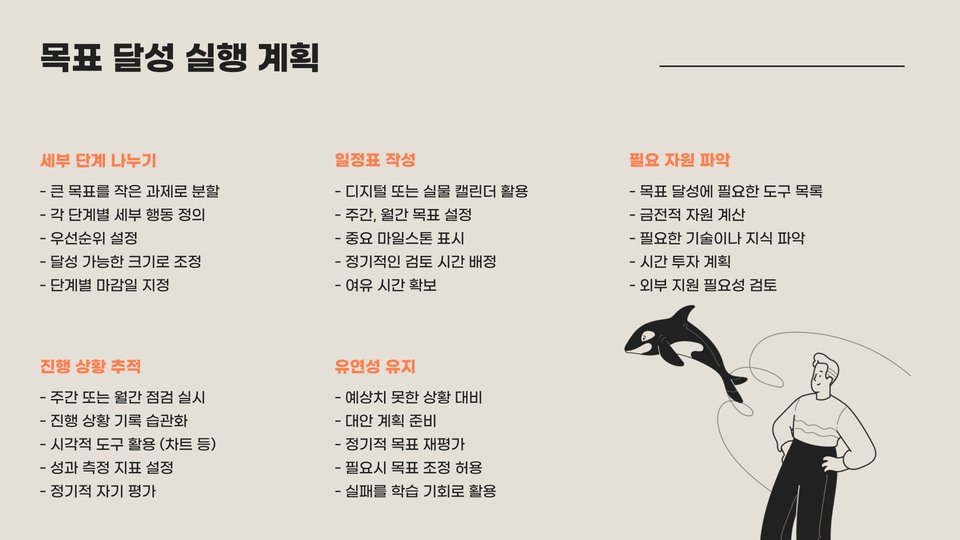 - 목표는 SMART 원칙에 따라 구체적이고 실현 가능해야 합니다.