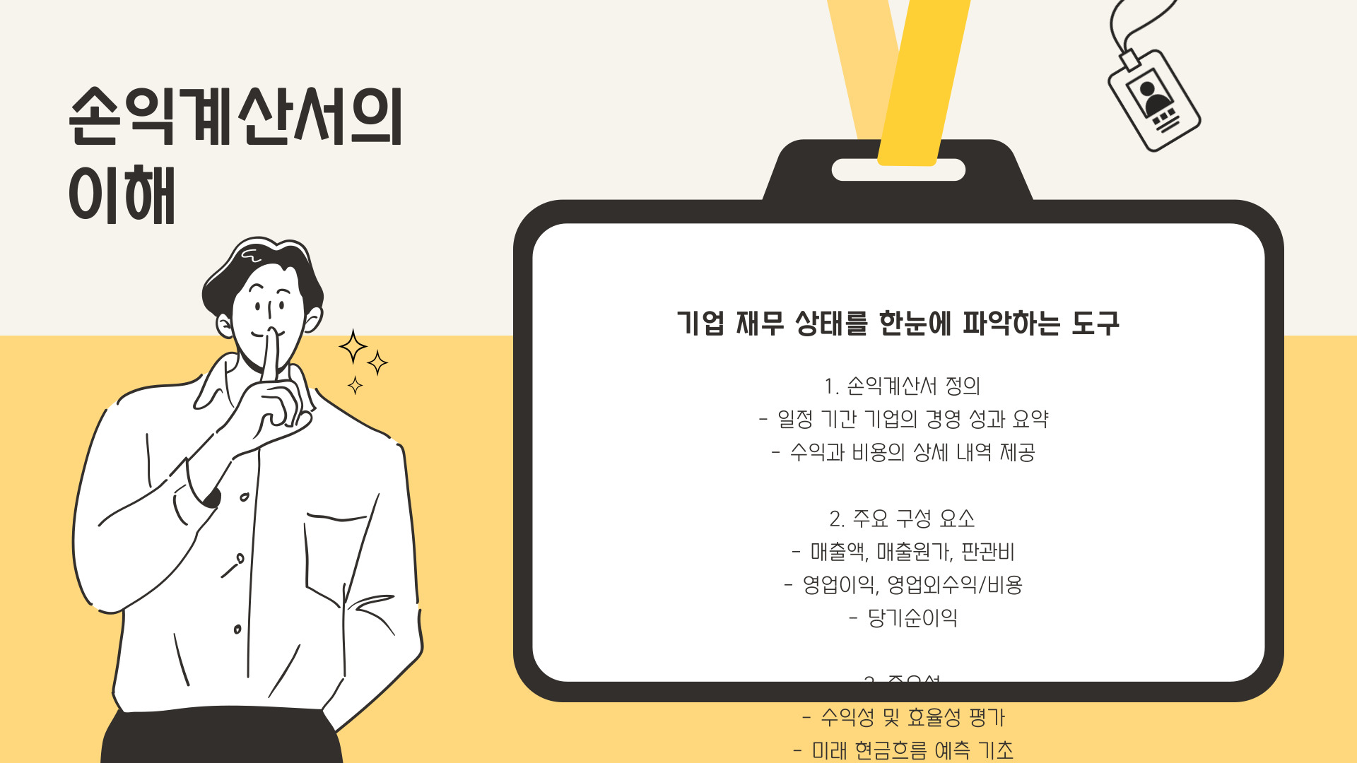 손익계산서는 기업의 수익성과 경영 효율성을 평가하는 데 사용되는 재무 보고서입니다. 이 보고서는 일정 기간 동안의 수익, 비용, 그리고 순이익을 기록합니다. 손익계산서는 크게 수익, 비용, 순이익으로 나뉩니다. 이를 통해 기업이 얼마나 효율적으로 운영되고 있는지를 알 수 있습니다. 특히, 손익계산서를 통해 비용 구조를 파악하고, 수익성을 극대화할 수 있는 기회를 찾는 것이 중요합니다.