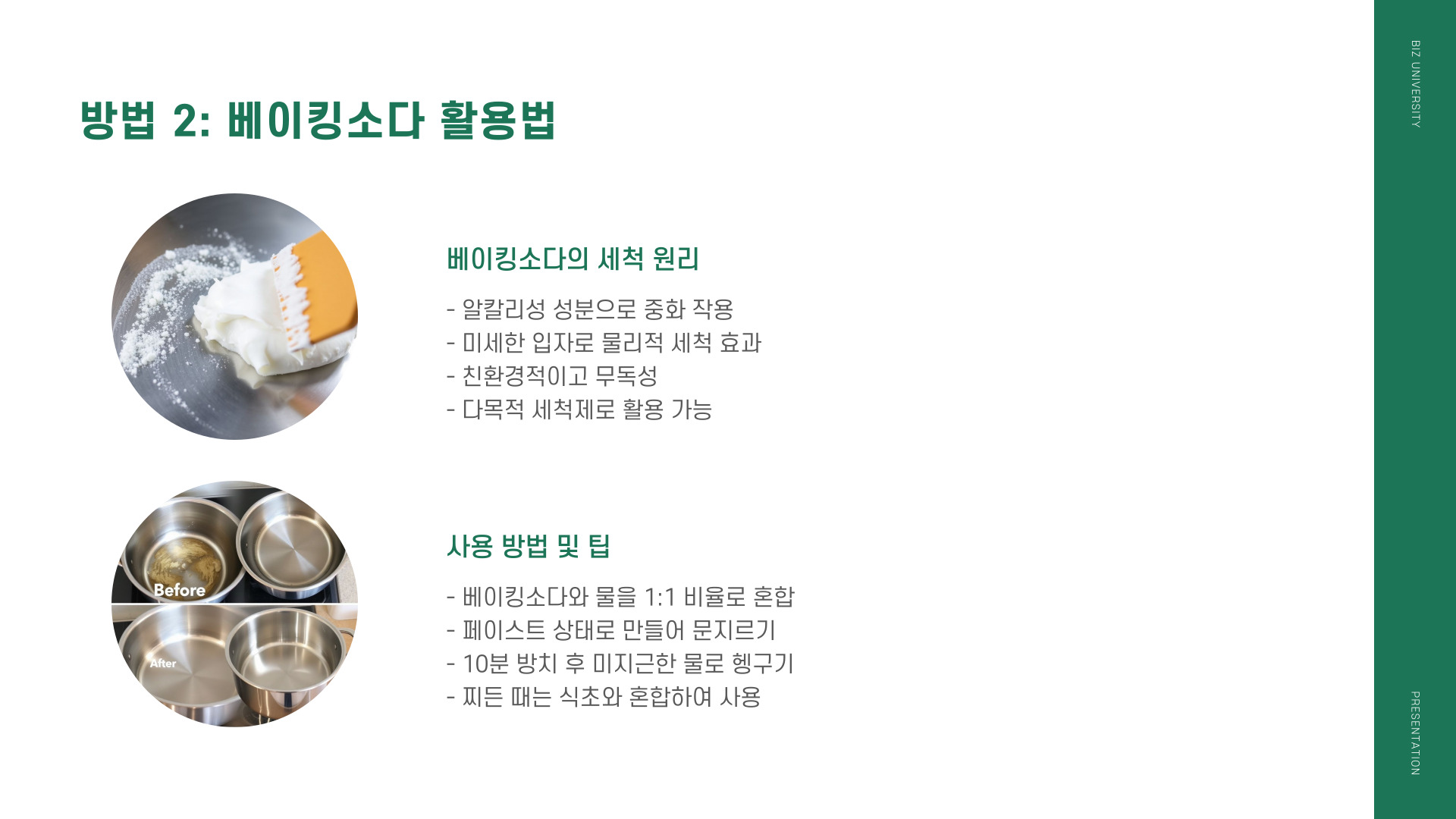| 베이킹 소다 | 표면 손상 없이 청소 가능 |