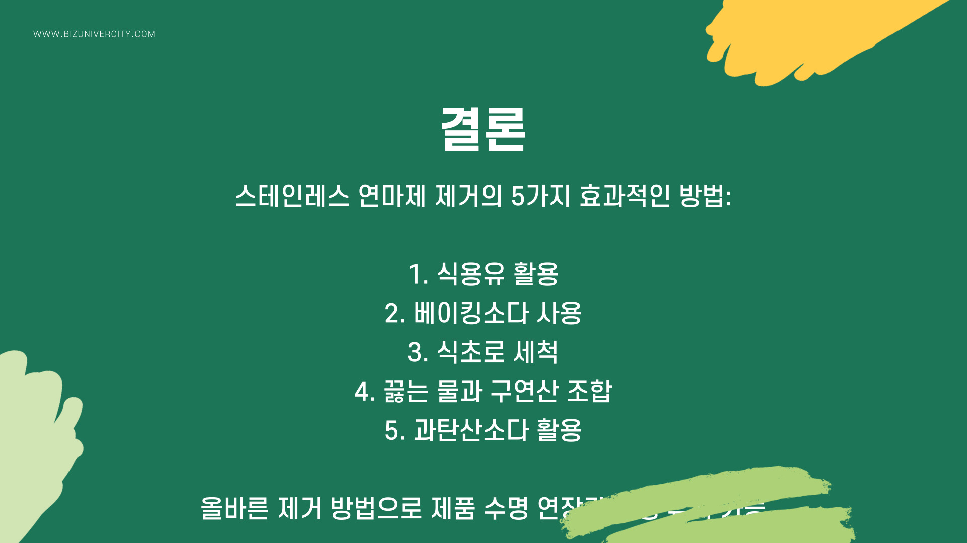 | 식초 | 친환경적이며 강력함 |