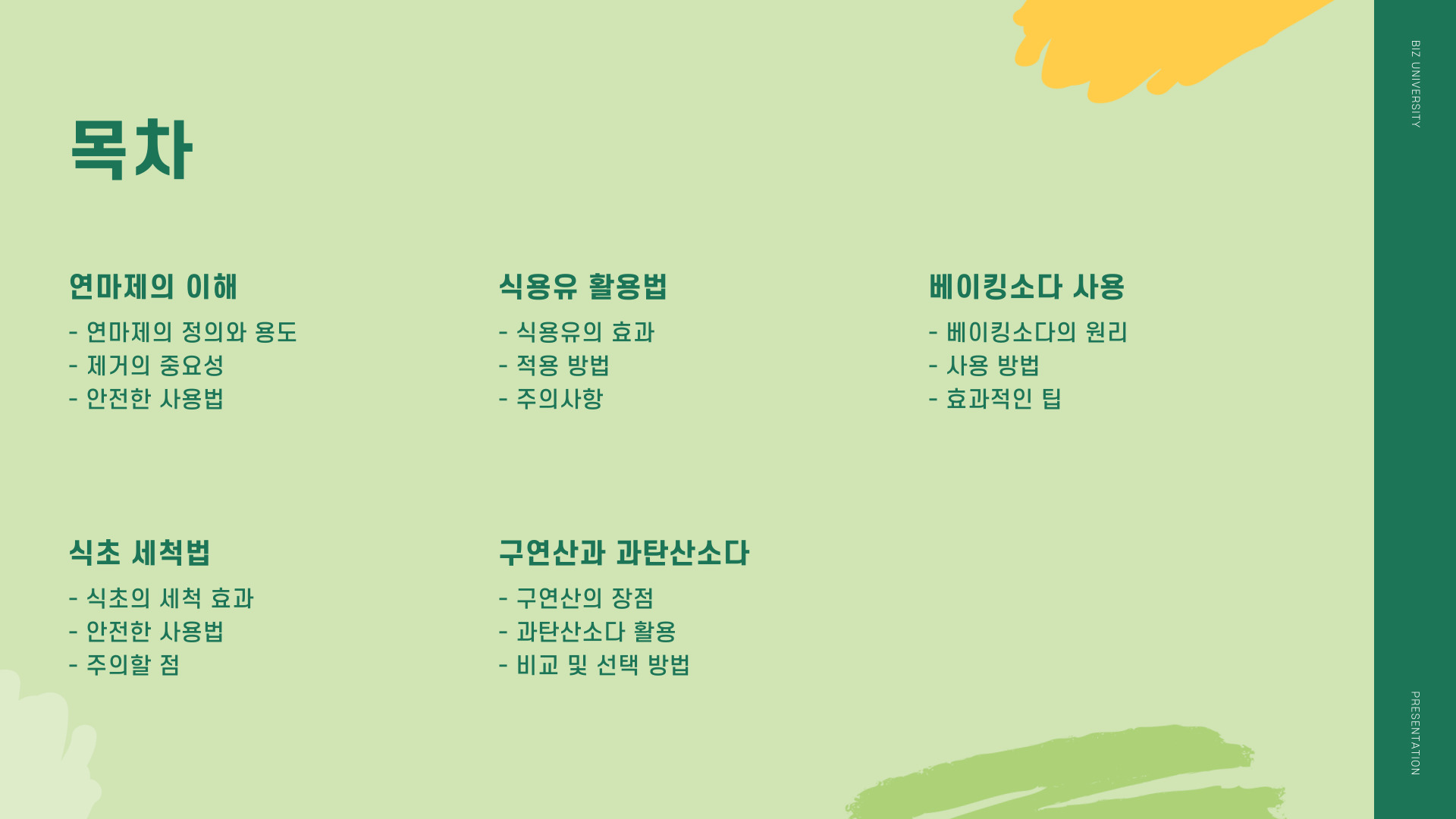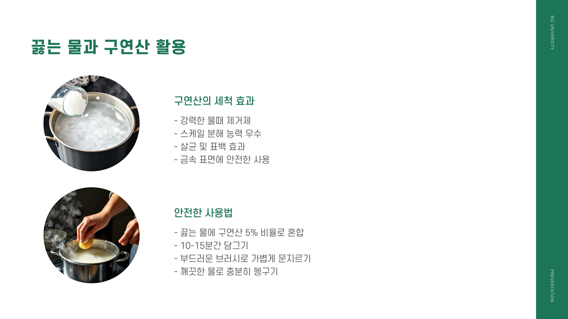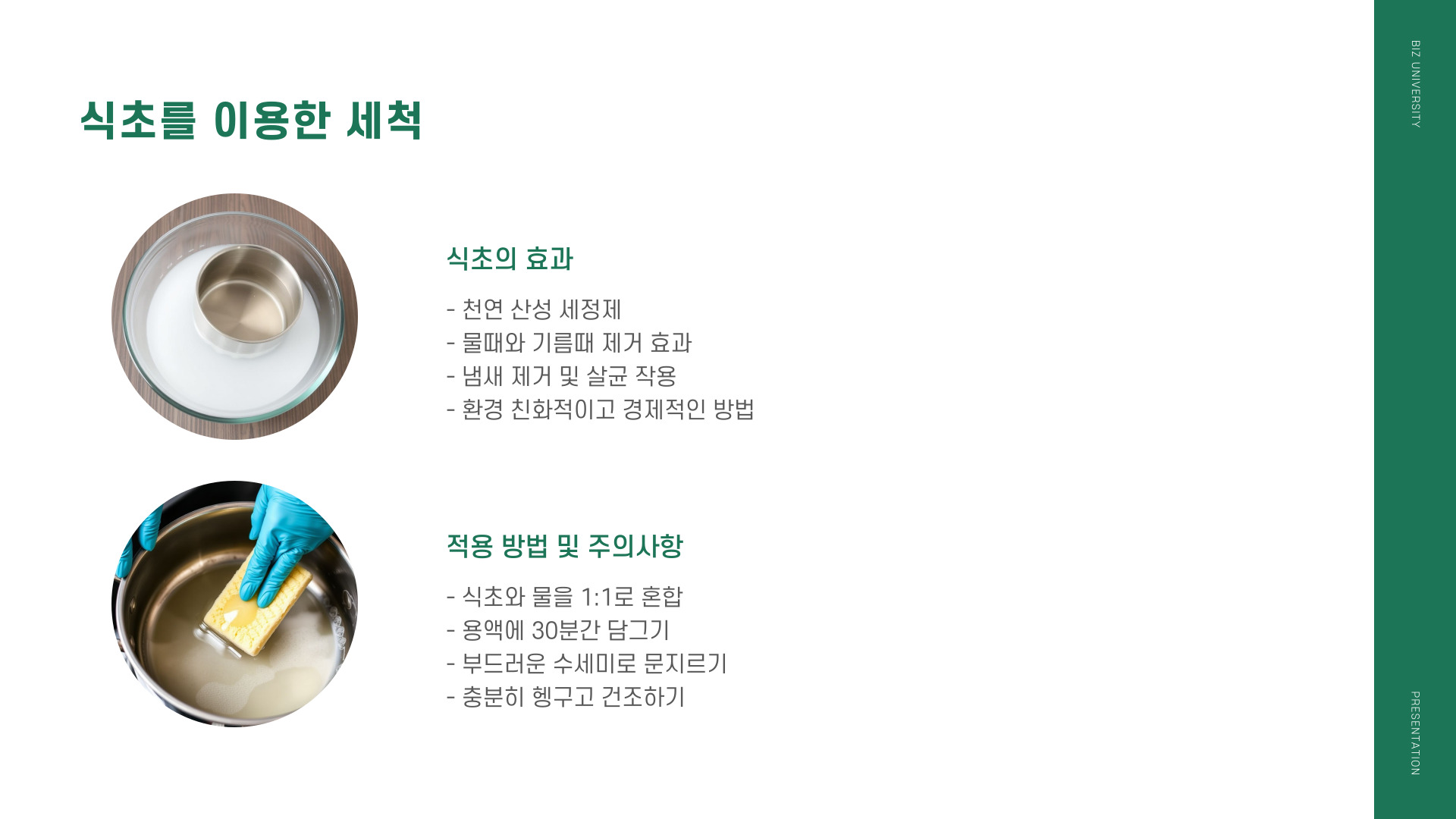 | 식초 | 친환경적이며 강력함 |