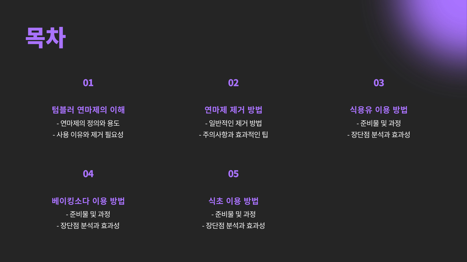 결론적으로, 텀블러의 연마제 제거는 안전과 위생을 위해 필수적입니다. 각 제품의 특징과 사용 방법을 잘 비교하여 자신에게 맞는 제품을 선택하는 것이 중요합니다. 정기적인 관리와 적절한 세정을 통해 텀블러를 깨끗하게 유지하고, 오랫동안 사용할 수 있도록 하세요.