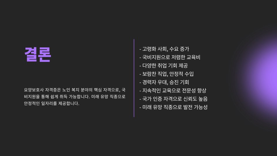 결론적으로, 요양보호사 자격증과 관련된 국비 지원 프로그램은 요양보호사로서의 경로를 쉽게 만드는 데 큰 도움이 됩니다. 이 기회를 최대한 활용하여, 많은 분들이 필요한 교육과 훈련을 통해 자격증을 취득하고, 사회에 기여할 수 있는 기회를 누리기를 바랍니다.