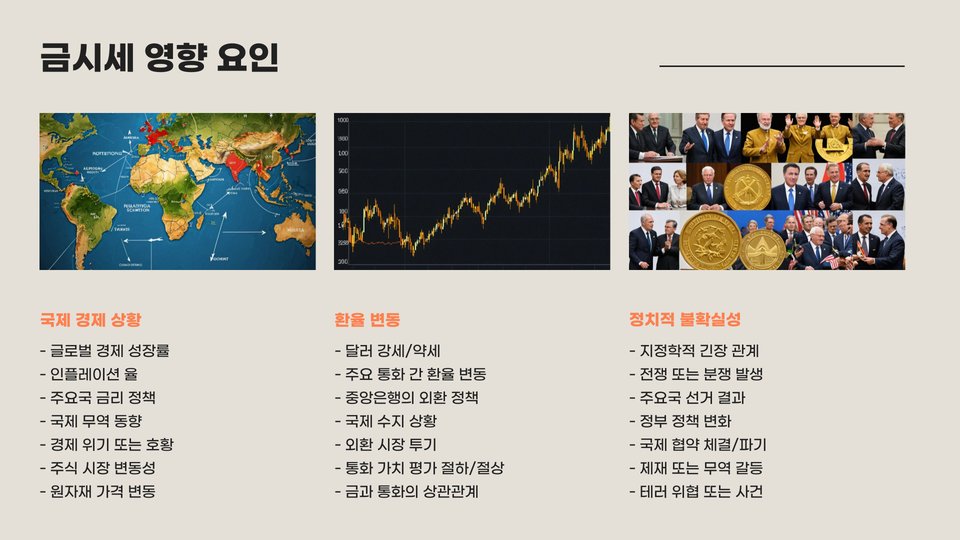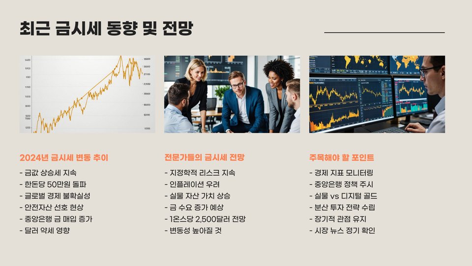 예를 들어, 유명 경제 방송이나 유튜버의 분석을 참고하면, 금 시세의 흐름을 예측하는 데 도움이 됩니다. 이들은 금 시장의 트렌드, 정치적 요인, 글로벌 경제 등 다양한 요소를 고려하여 신뢰할 수 있는 정보를 제공합니다. 따라서, 이러한 정보를 바탕으로 투자 시점을 결정하는 것이 중요합니다.