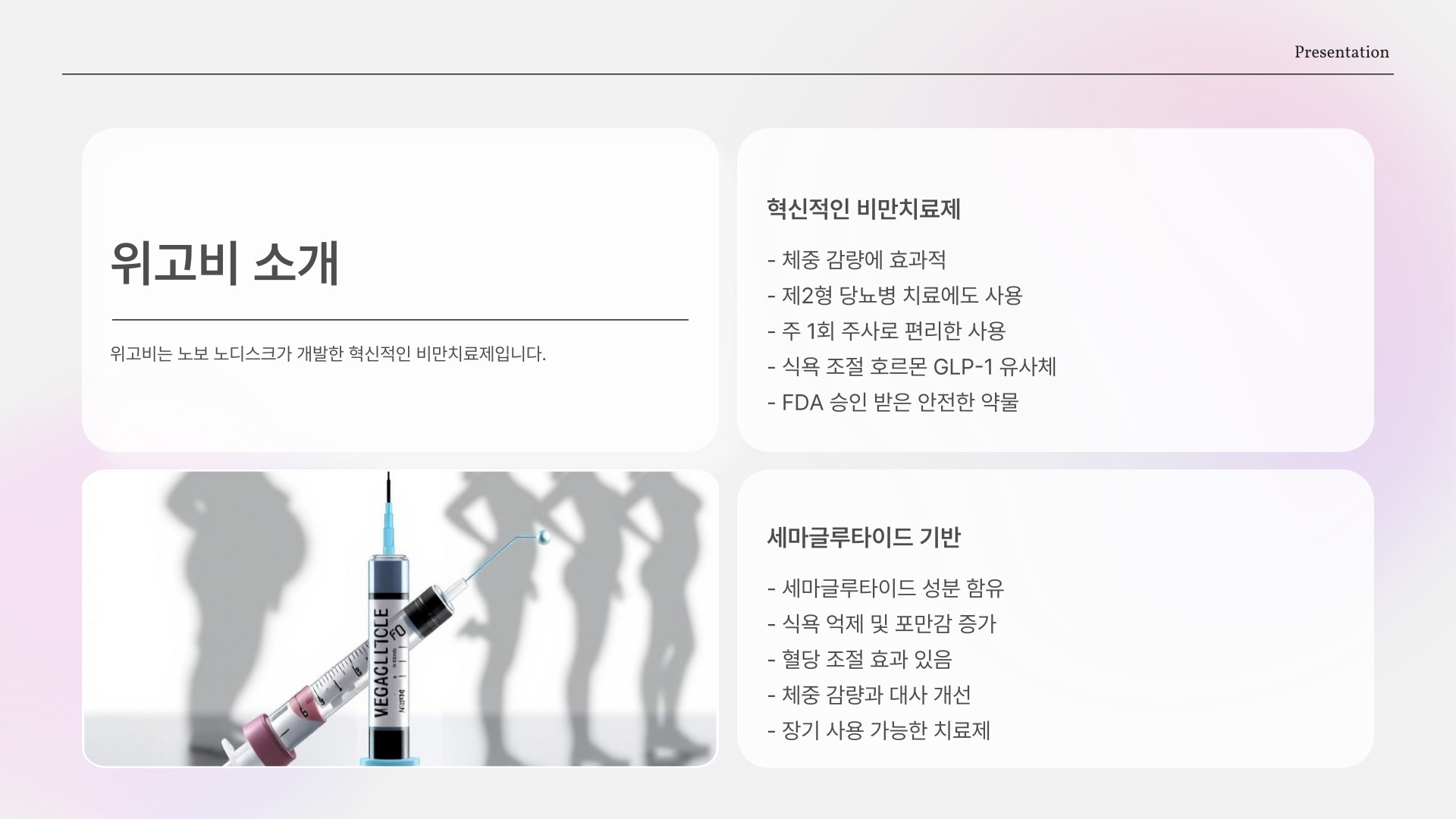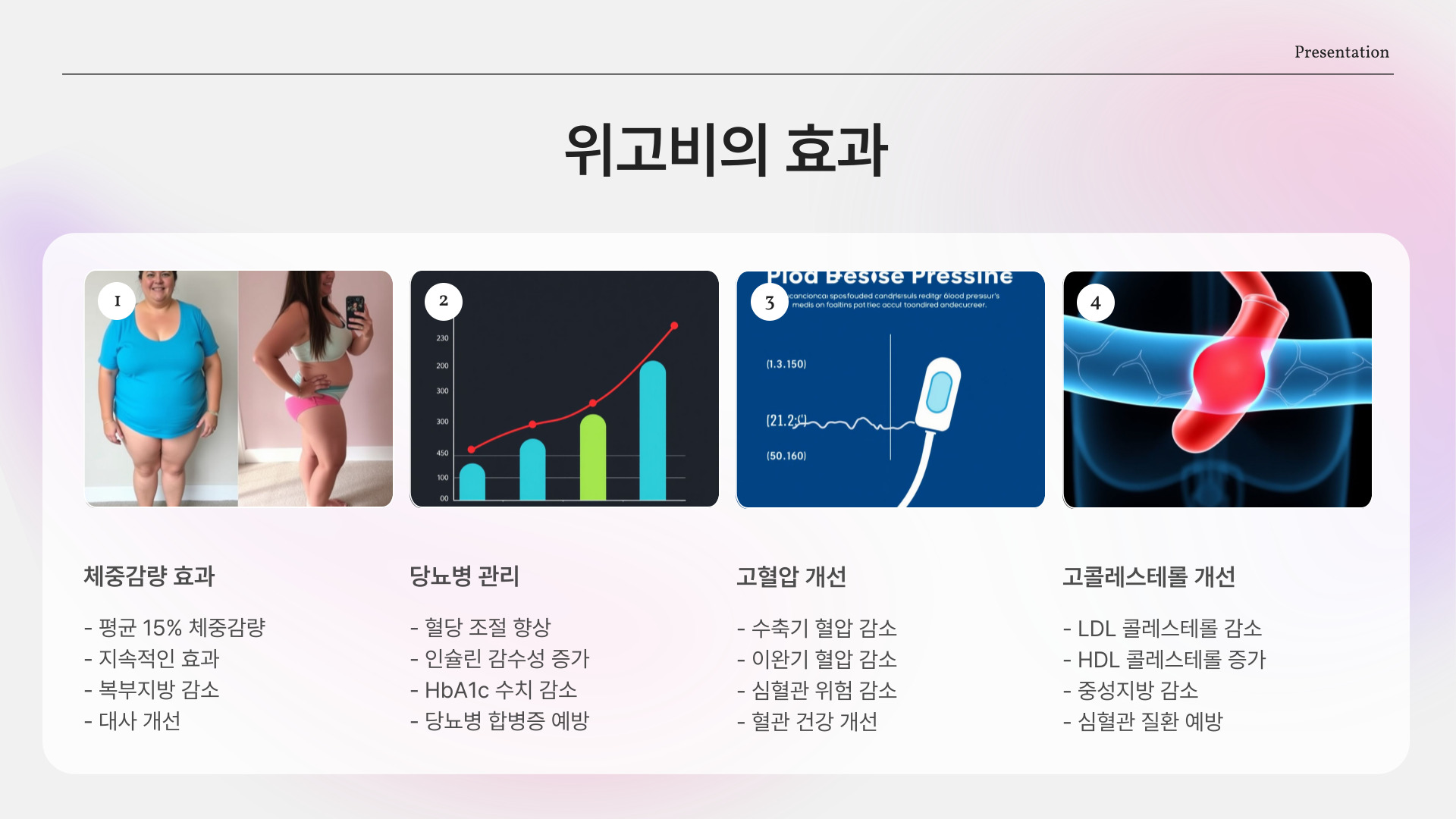- 위고비는 체중 감소와 혈당 조절에 효과적입니다.