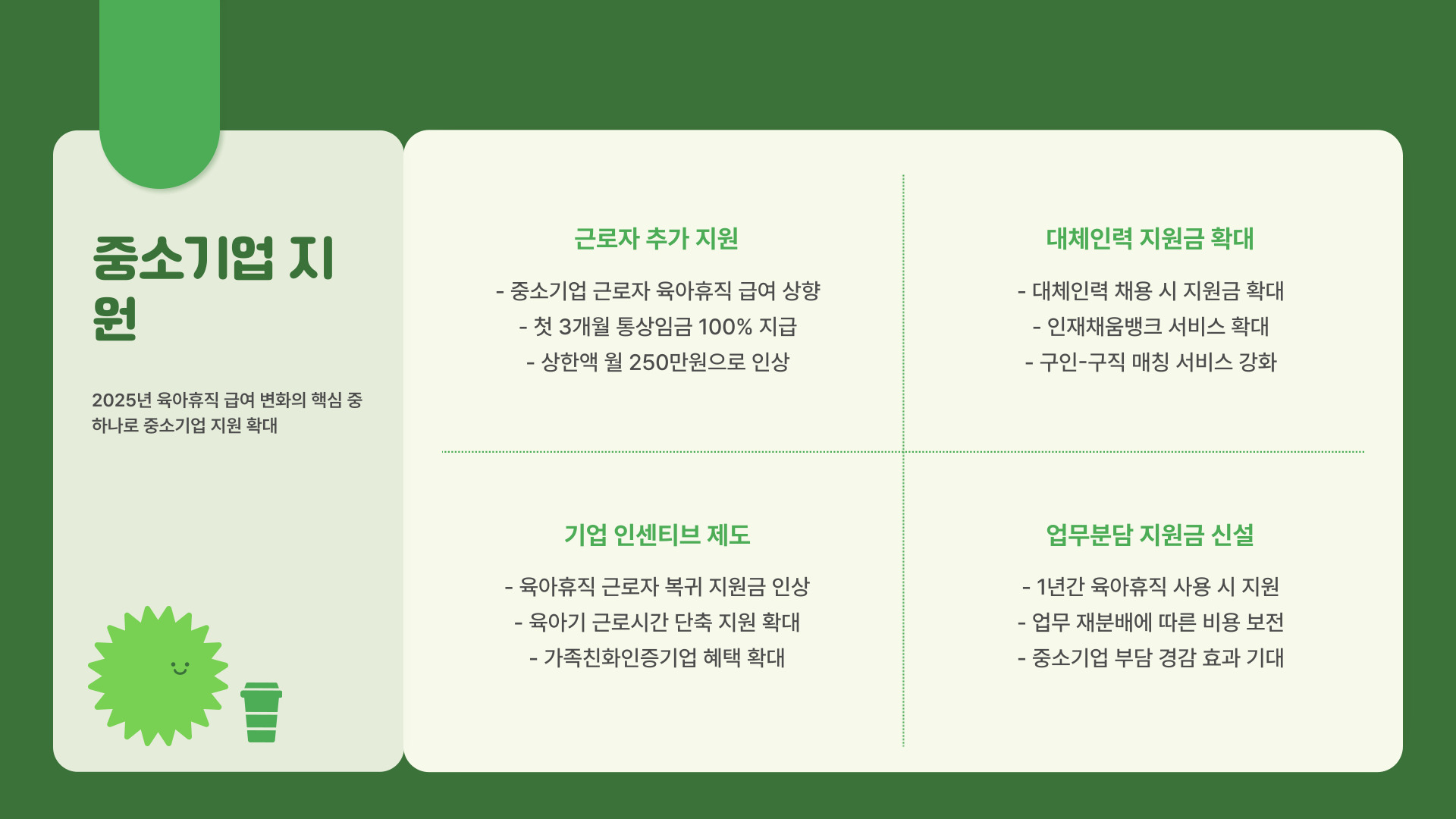- 2025년 육아휴직 급여 상한액 인상 예정.