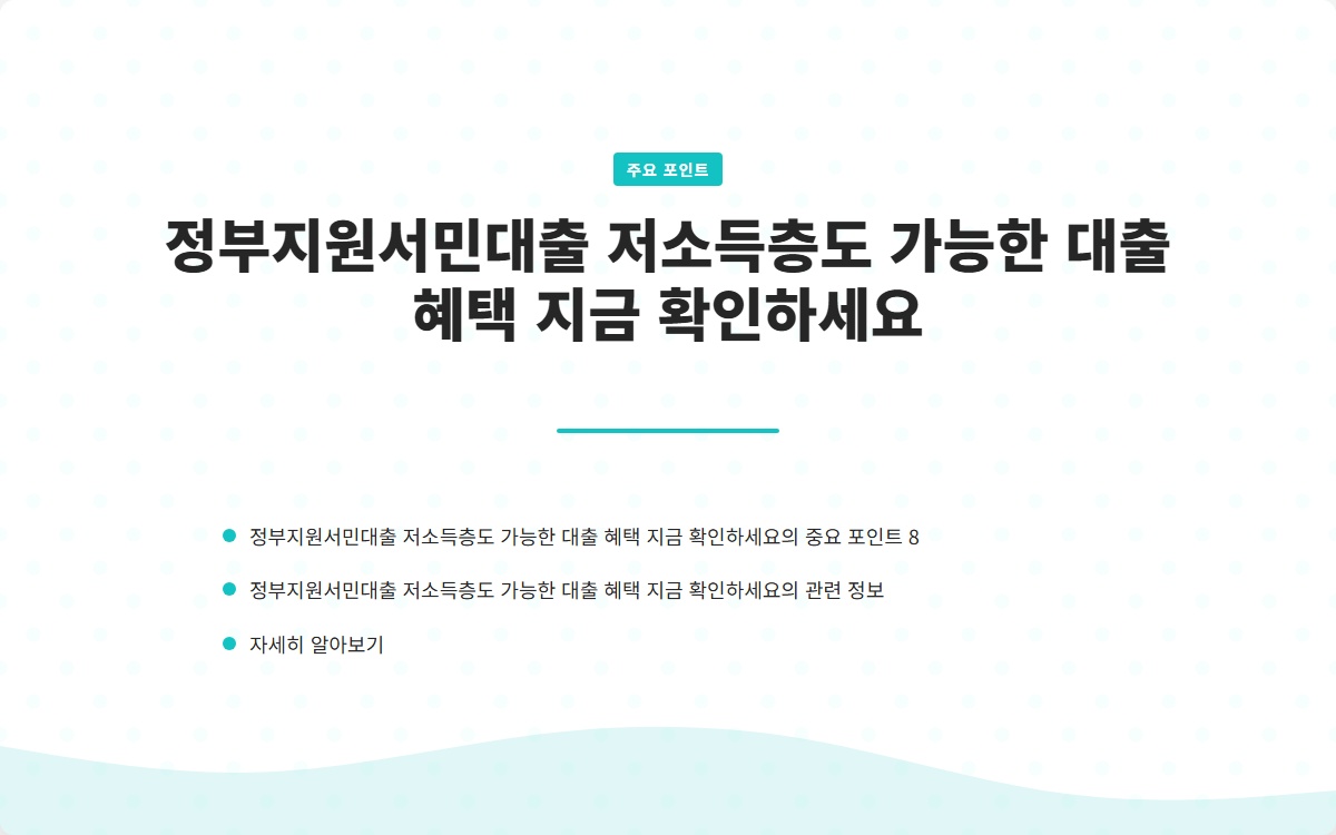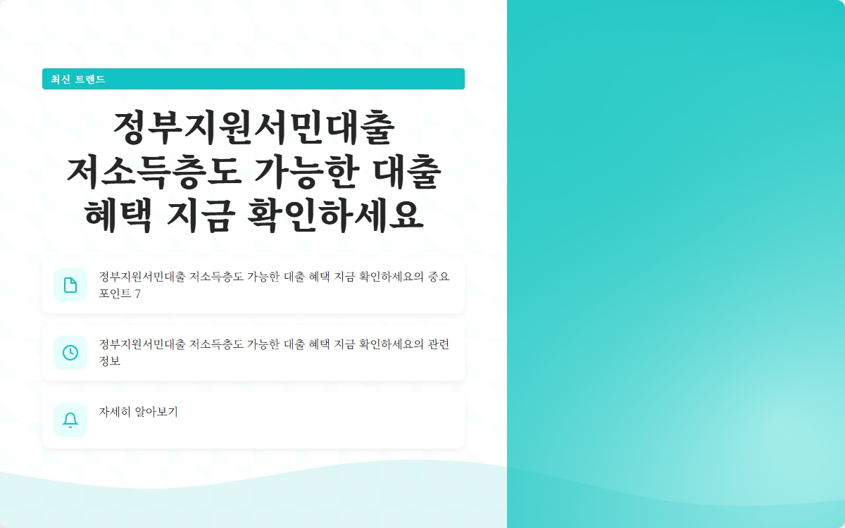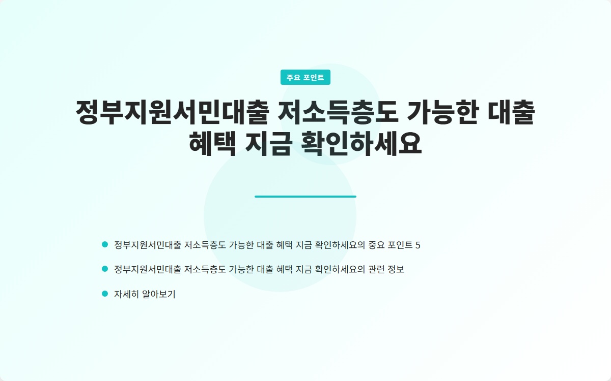 정부지원서민대출 저소득층도 가능한 대출 혜택 지금 확인하세요