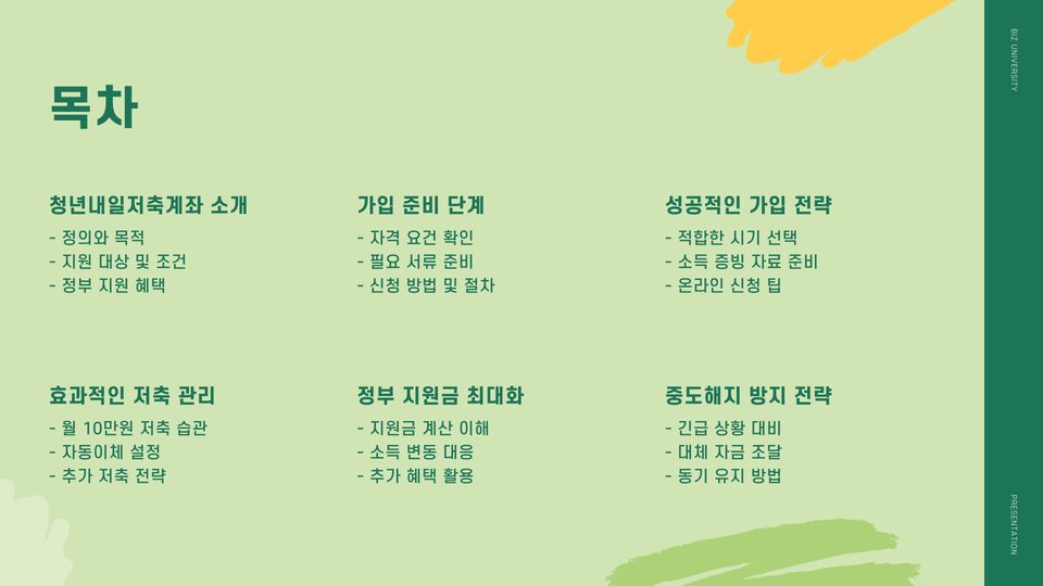 청년내일저축계좌는 청년들이 안정된 미래를 준비할 수 있는 소중한 기회입니다. 이 계좌를 통해 체계적인 저축과 정부의 지원을 통해 자산을 축적할 수 있습니다. 각 단계에서의 성공 비법을 잘 활용하면, 청년들은 더 나은 내일을 맞이할 수 있을 것입니다. 따라서, 지금 바로 청년내일저축계좌에 가입하고 재정 관리를 시작해보세요!