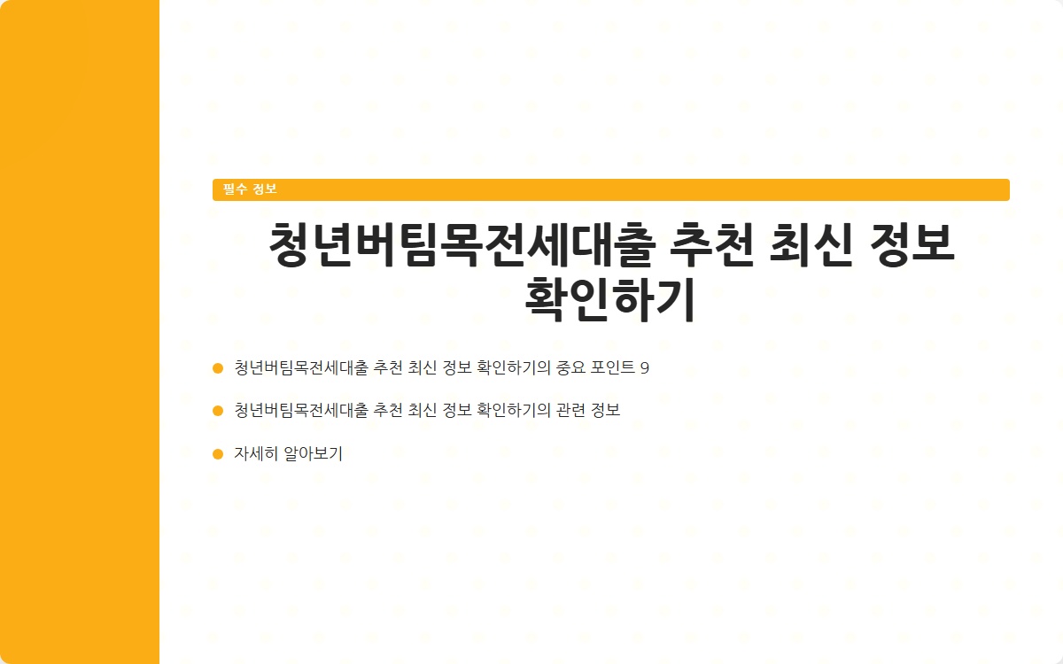 청년버팀목전세대출 추천 최신 정보 확인하기