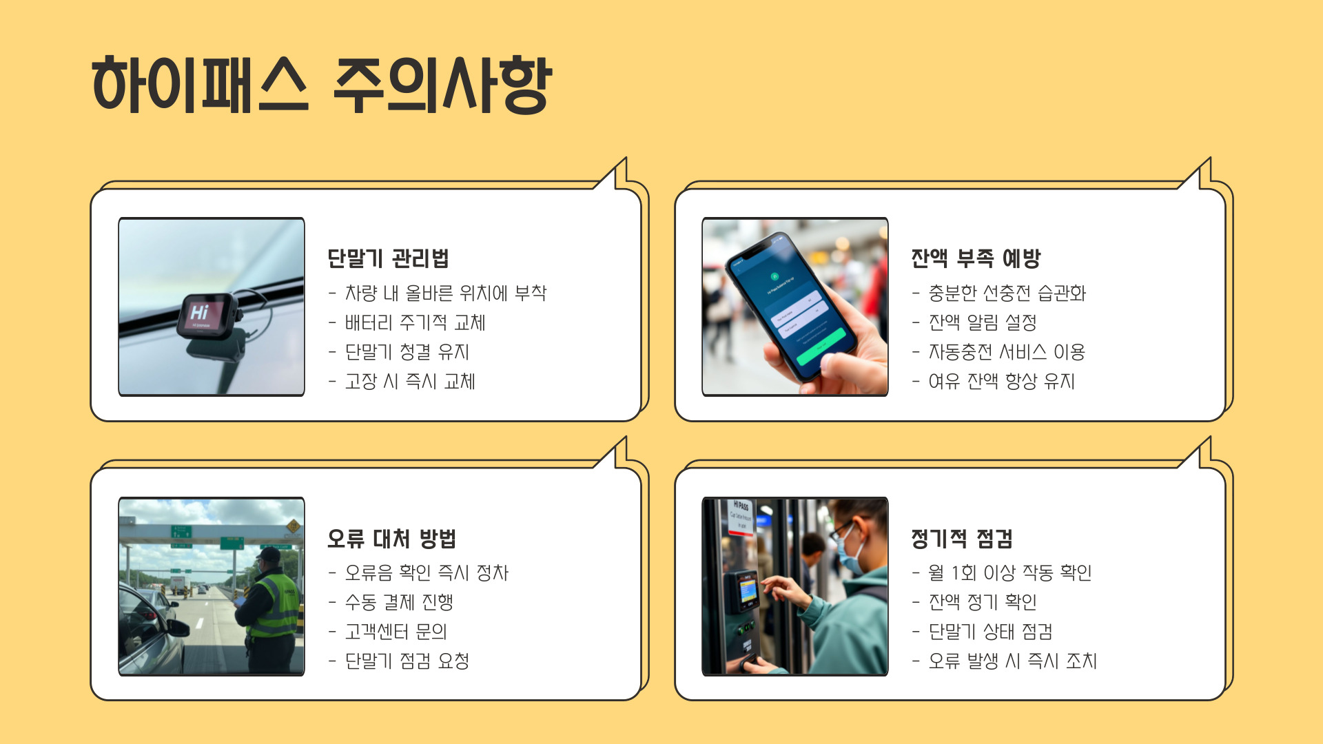 - 정기적으로 통행료 미납 조회를 수행하세요.