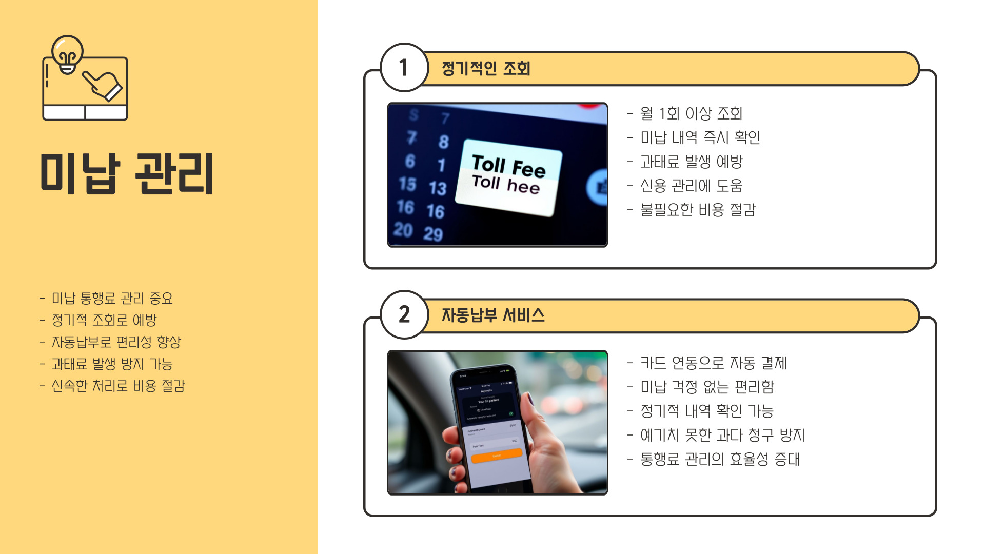 - 자동 납부 시스템 활용으로 미납 예방