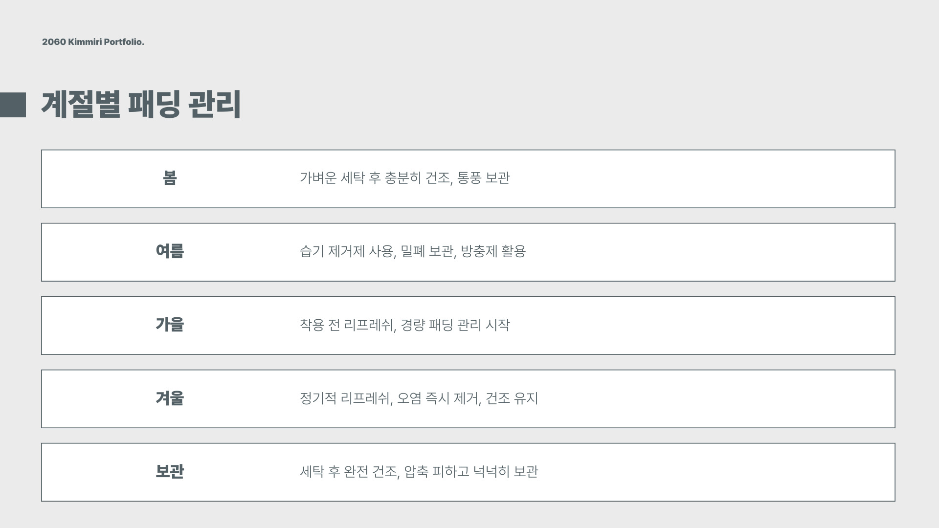 패딩 관리 요령 설명