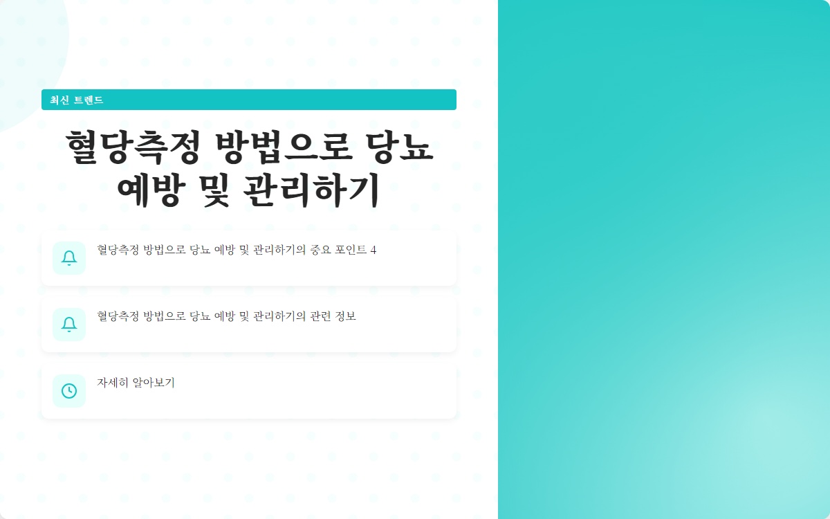 이러한 방법을 통해 자신의 혈당 수치를 쉽게 측정할 수 있으며, 정기적인 측정이 필요합니다.