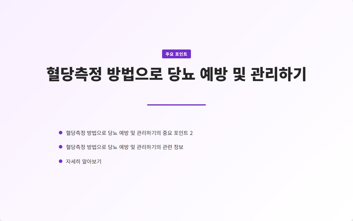 혈당 측정 방법을 제대로 이해하고 활용하는 것은 당뇨를 예방하고 관리하는 데 매우 중요합니다. 정기적인 혈당 측정과 함께 건강한 생활습관을 유지하면 당뇨병의 위험을 줄일 수 있습니다. 여러분의 건강을 지키기 위해 오늘부터 혈당 측정을 시작해 보세요!