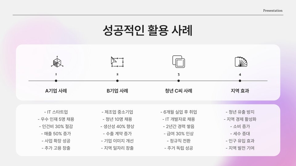 예를 들어, A 기업은 이 지원금을 통해 청년 인턴을 고용하였고, 이후 인턴이 정규직으로 전환되었습니다. 이 과정에서 기업은 지원금을 통해 인건비를 절감할 수 있었고, 인턴은 실무 경험을 쌓아 빠르게 성장할 수 있었습니다. 이러한 사례는 청년일자리도약장려금이 실제로 어떻게 활용될 수 있는지를 보여주는 좋은 예입니다.