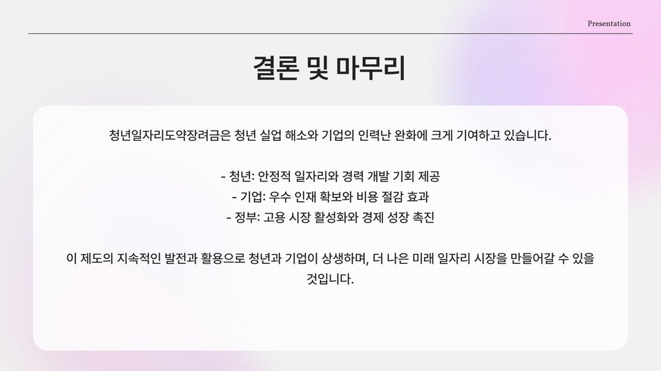 2025 청년일자리도약장려금은 청년들에게 단순한 재정적 지원을 넘어, 교육과 경력 개발의 기회를 제공하는 소중한 정책입니다. 이 제도를 통해 취업의 문이 좁아진 청년들에게 새로운 가능성을 제시하고 있습니다. 구직을 원하는 청년들, 또는 더 나은 직업적 성장을 꿈꾸는 이들은 이 기회를 놓치지 말아야 할 것입니다. 적극적인 참여와 활용이 필요합니다.