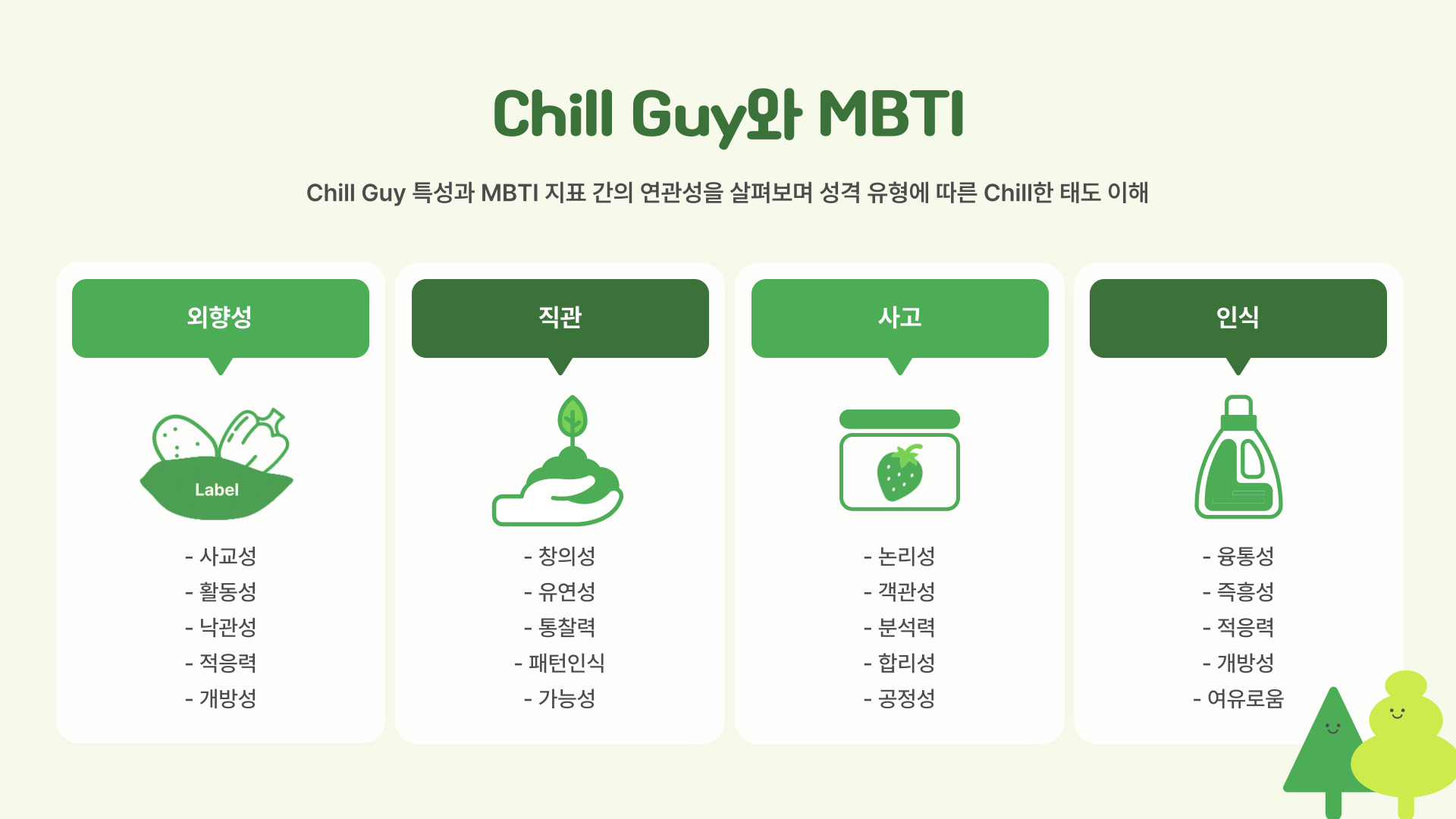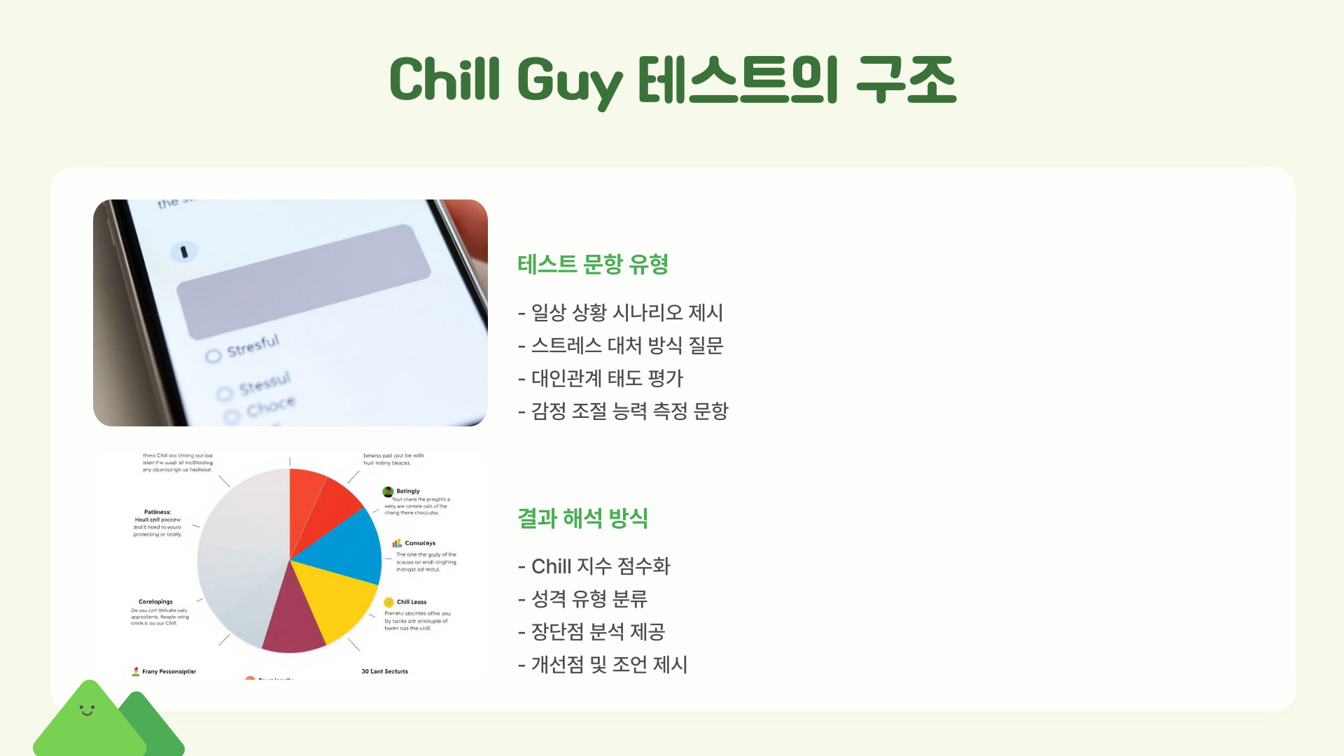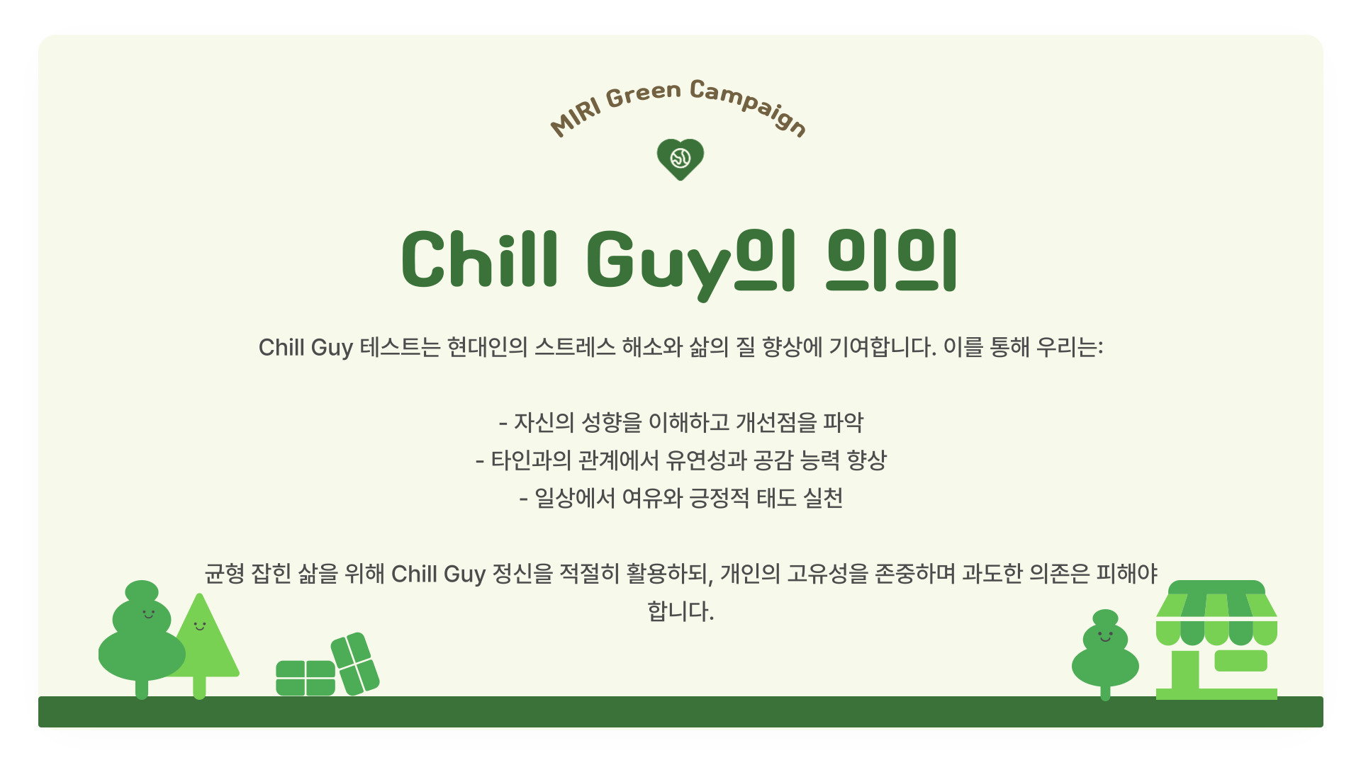 - 자신의 성격을 이해하기 위한 chill guy 테스트를 활용하라.