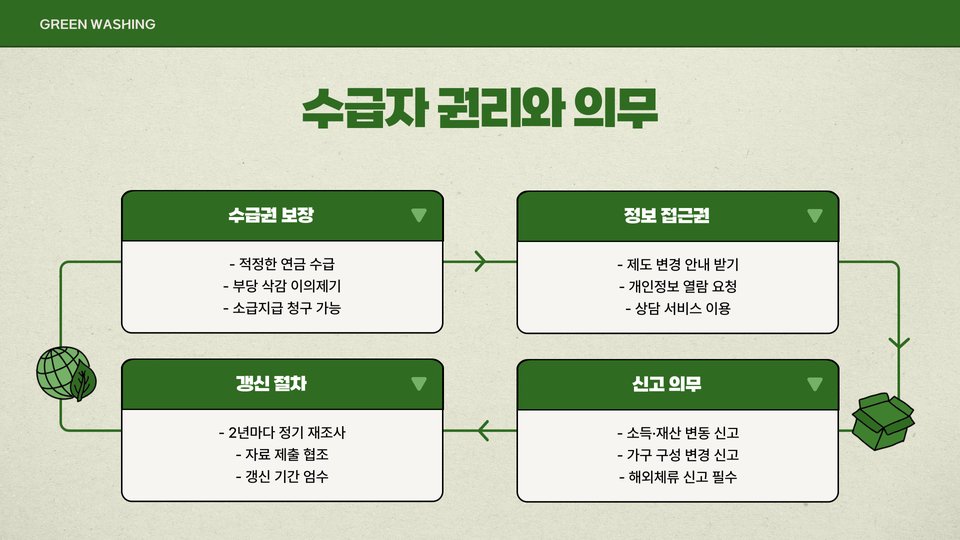 마지막으로, 수급 자격을 쉽게 포기하는 경우가 많은데, 신청 기간 내 반드시 신청하는 것이 중요합니다. 여러 가지 변수가 있을 수 있기에, 제 시간에 신청하는 것이 기본적으로 놓칠 수 있는 기회를 줄이는데 큰 역할을 합니다.