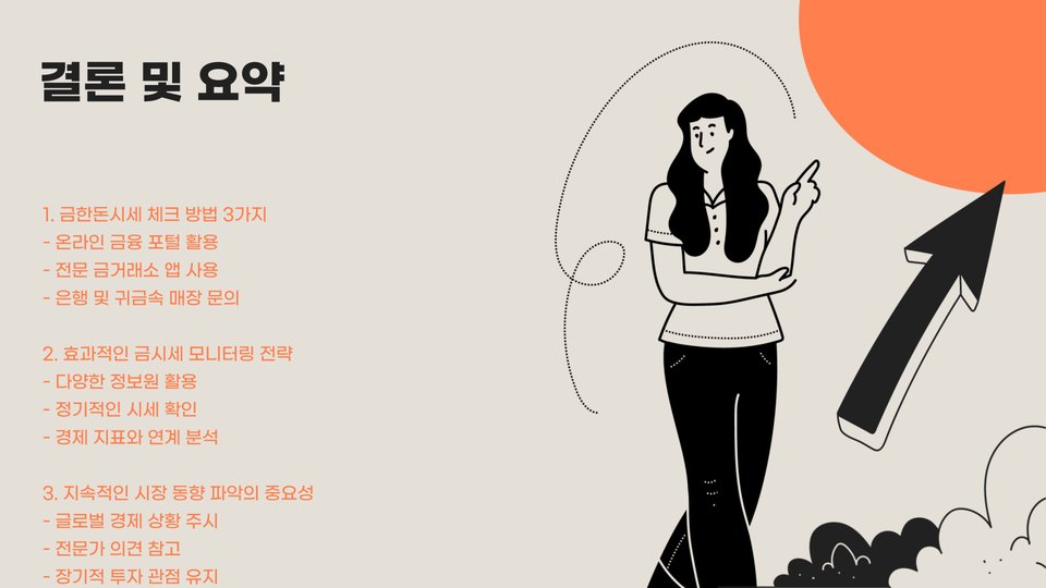 결론적으로, 요즘 금한돈 시세를 체크하는 데 있어 가장 효과적인 방법은 웹사이트, 모바일 앱, 그리고 전문 매체를 활용하여 정보를 신속하고 정확하게 파악하는 것입니다. 이러한 방법들을 통해 현명한 투자 결정을 내리고 안정적으로 자산을 관리하는 데 도움이 되기를 바랍니다.