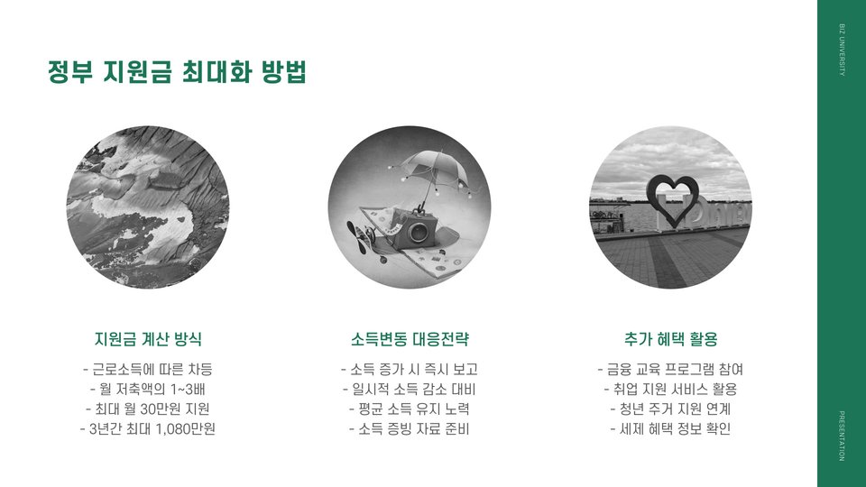 청년내일저축계좌의 가장 큰 장점 중 하나는 정부 지원금입니다. 정부는 매월 저축액의 일정 비율을 지원해주는데, 이 지원금은 청년들이 자산을 보다 빠르게 축적할 수 있도록 돕습니다. 하지만 지원금은 조건이 있으므로, 반드시 해당 조건을 충족해야 합니다. 따라서, 청년들은 정부 지원금을 최대한 활용할 수 있는 방법을 고민해야 합니다. 예를 들어, 정기적인 저축을 통해 지원금을 받을 수 있는 기준을 충족하는 것이 중요합니다.