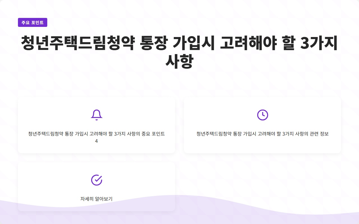 위의 세 가지 사항을 잘 숙지하고 준비하면, 청년주택드림청약 통장 가입이 훨씬 수월해질 것입니다. 통장을 통해 많은 혜택을 누리며 내 집 마련의 꿈을 이루시길 바랍니다!